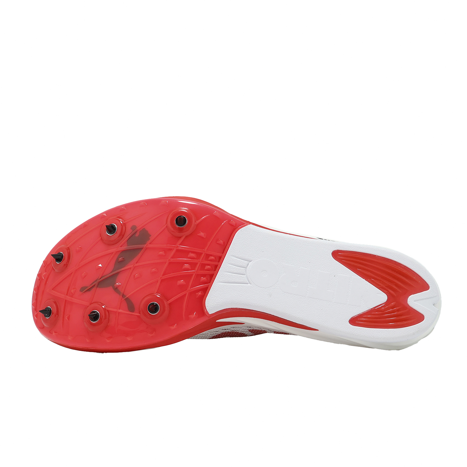 * 可拆式鞋釘搭配突出大底設計,讓您在競速過程中牢牢抓緊地面,增加抓地性。