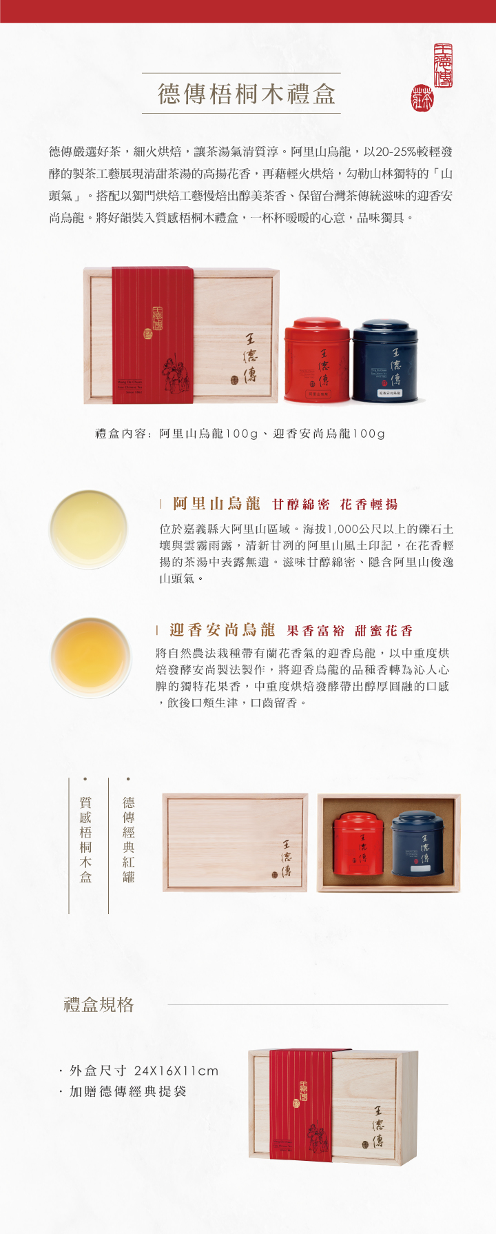 【王德傳】德傳梧桐木禮盒(阿里山烏龍100g+迎香安尚烏龍100g)