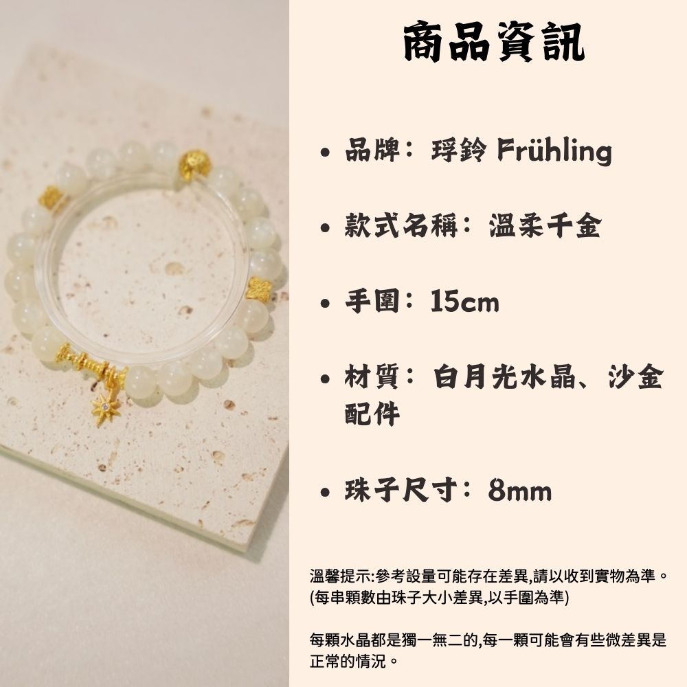 商品內容:品牌名稱:琈鈴 Frühling產品名稱:溫柔千金 柔序雅養手環
