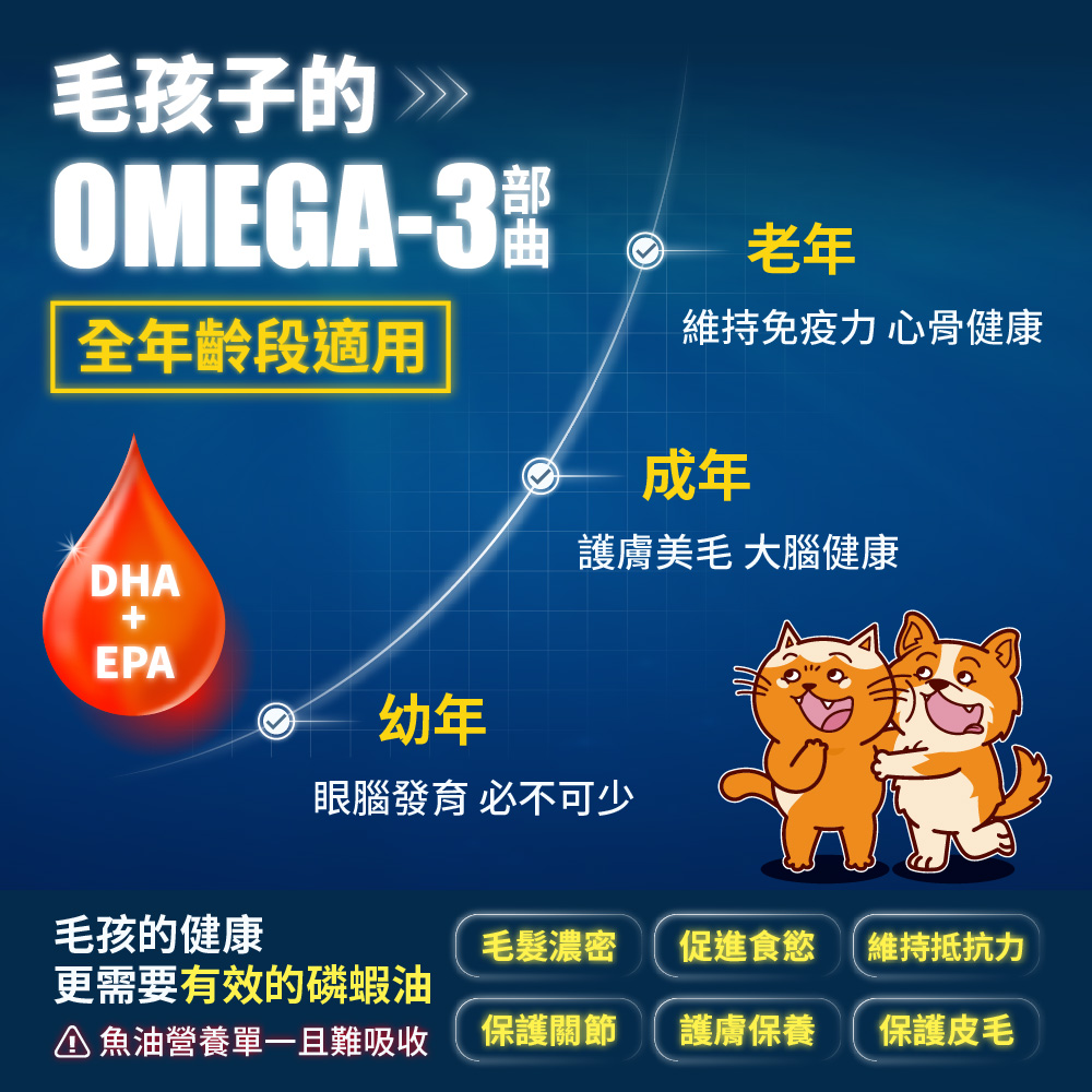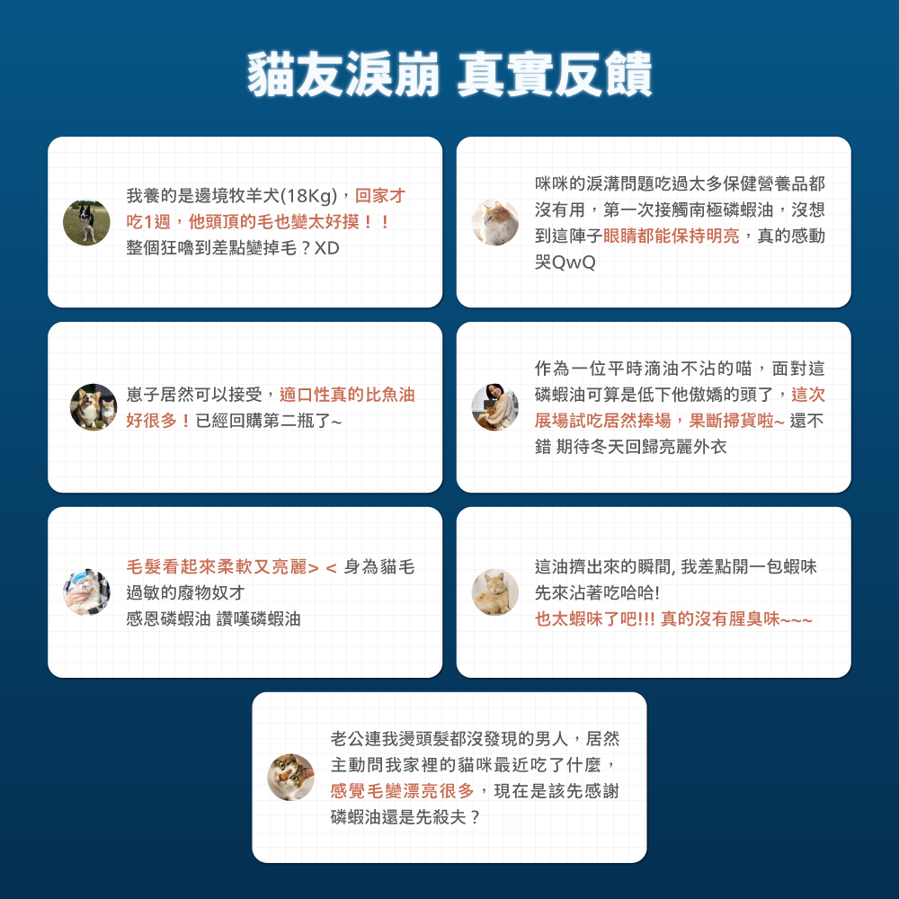 適用寵物種類:貓適用【請勿冷藏】南極磷蝦油請存放於陰涼處,勿放冰箱!冷藏會導致凝固,影響使用!避免放置高溫或陽光直射,確保產品品質!