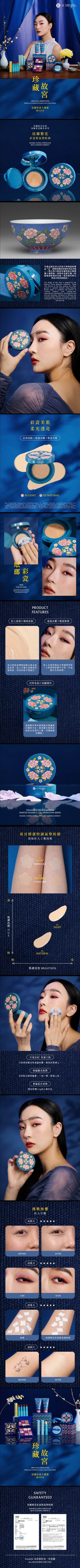 .故宮精選氣墊粉餅. 霧面妝感X陶瓷美肌. 輕拍無瑕X隱形毛孔. 保濕保養成分添加. SPF50+ ★★★防曬係數
