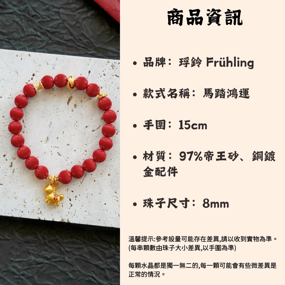 商品內容:品牌名稱:琈鈴 Frühling產品名稱:馬踏鴻運 騰勢啟程手環