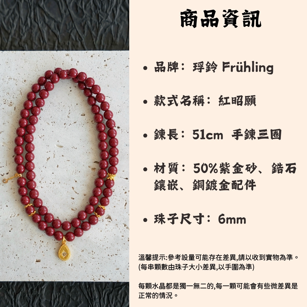 商品內容:品牌名稱:琈鈴 Frühling產品名稱:紅昭願 曜願昇運手環