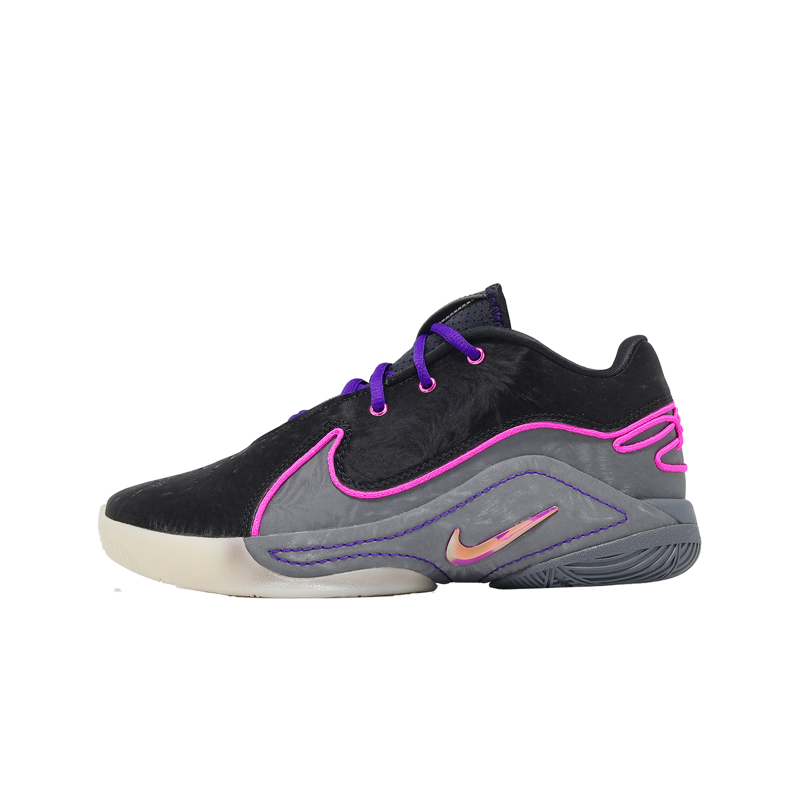 品牌: NIKE型號: FV5636-001品名: LeBron XXII GS版型: 版型正常* 鞋面的合成皮革鞋面配合柔軟內襯,全新加入的內外側 TPU 側牆貼片提供更好的中足鎖定,讓孩童在場上更加安心。