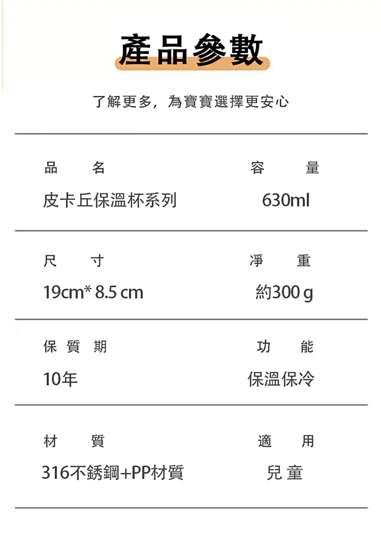 品名:【BEDDYBEAR】四葉草兒童保溫壺 黑白放電皮卡丘容量:630ml保溫保冷:8小時-12小時尺寸:瓶底8.5CM高19CM材質:Tritan 材質、硅膠、PP