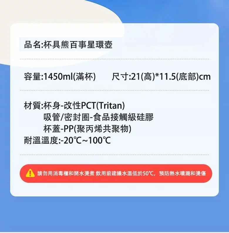 特色:一蓋雙飲、1450ml大容量、圓弧把手、防摔杯套