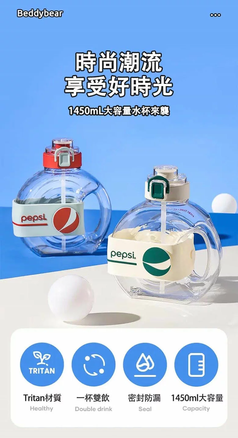 #百事聯名大容量水壺 #夏日必備涼水壺 #1450ml雙飲吸管杯