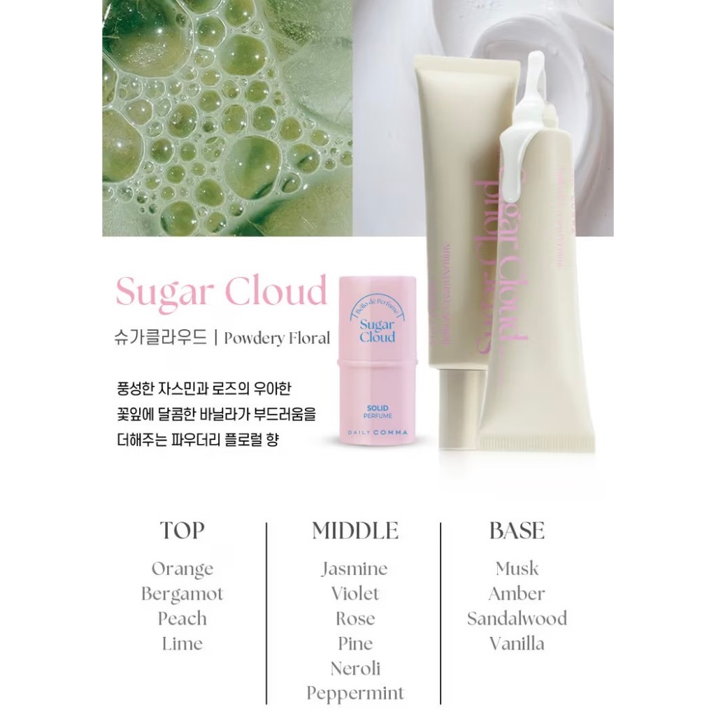 🌸 粉色|Sugar Cloud | Powdery Floral 甜霧花語甜美花香 × 柔和粉感• 前調:橙子、佛手柑、蜜桃、青檸• 中調:茉莉、紫羅蘭、玫瑰、松木、橙花、薄荷• 後調:麝香、琥珀、檀香、香草