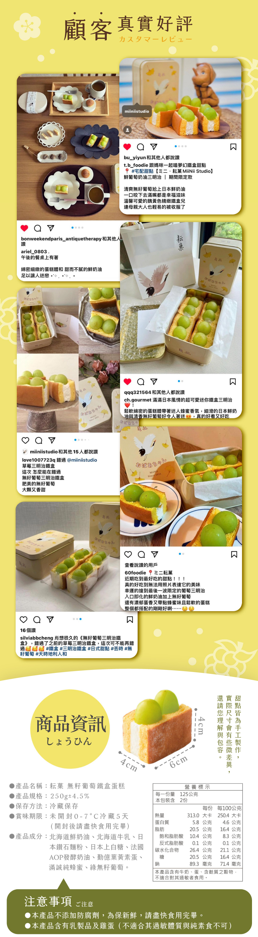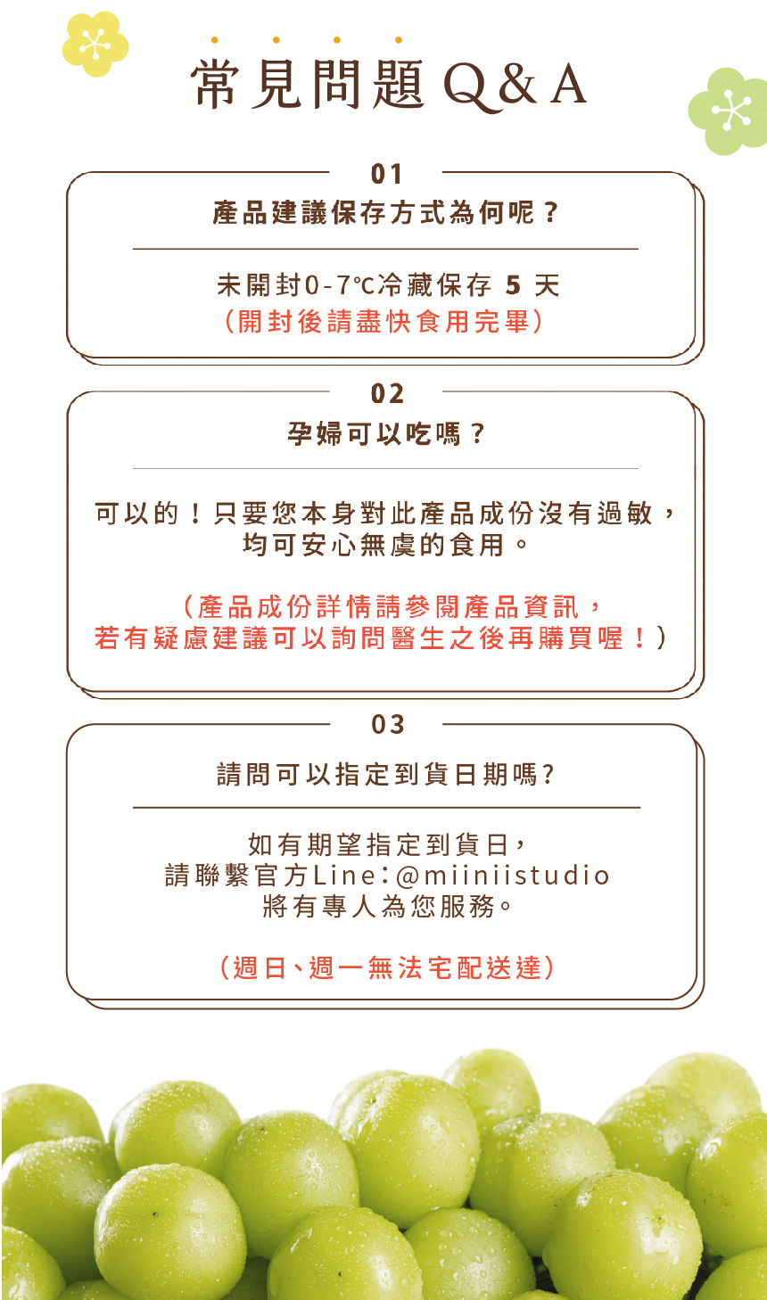 ・本商品無法提供換貨服務,如需其他商品請您重新購買。・甜點出貨前均經嚴格品質管制確保甜點完整性,如到貨後發現因作業程序錯誤,導致寄送商品與訂購數量、品項不符,或訂購之商品包裝內容物有瑕疵 ( 物流運送過程造成嚴重毀損及失溫 ),請於收到商品的24小時內拍照或錄影,並立即與官方LINE@miiniistudio 客服人員聯繫。・在未完成退貨程序前,請務必保留包裹收件時的原樣,避免影響貨故判定結果。・即使品質的控管及保護措施完善,甜點冷藏宅配仍有一定的風險,車體運送途中可能造成水果與蛋糕輕微位移、或些許裝飾掉落,恕不在貨故申請範圍內,訂購時請評估是否能承擔接受。