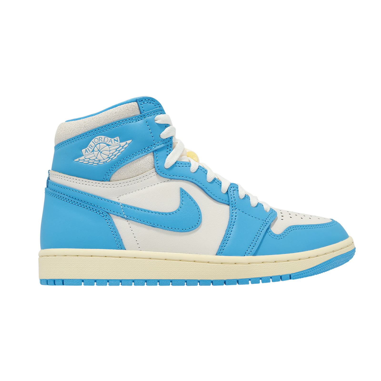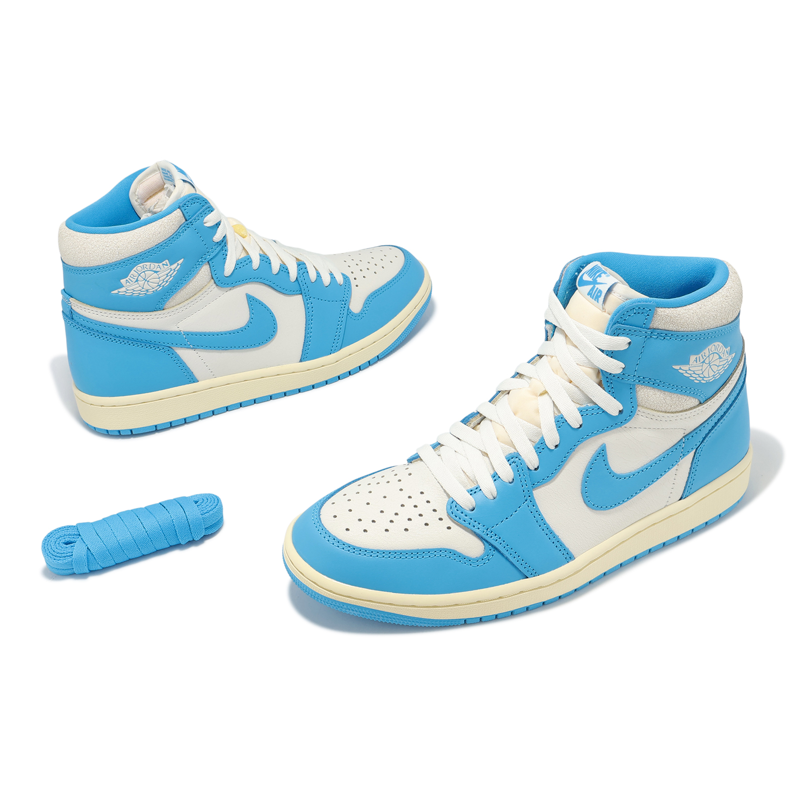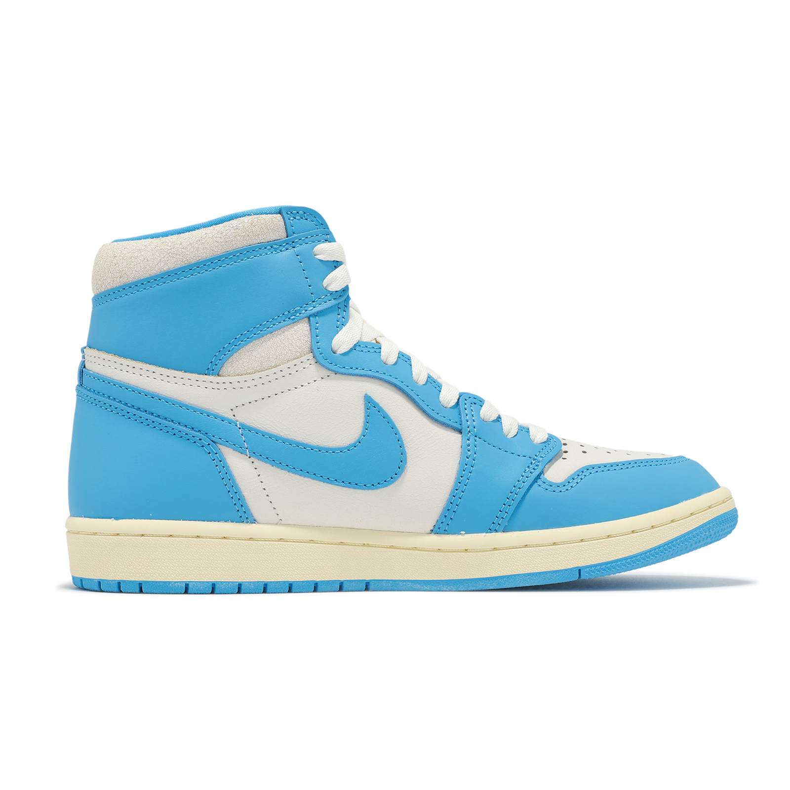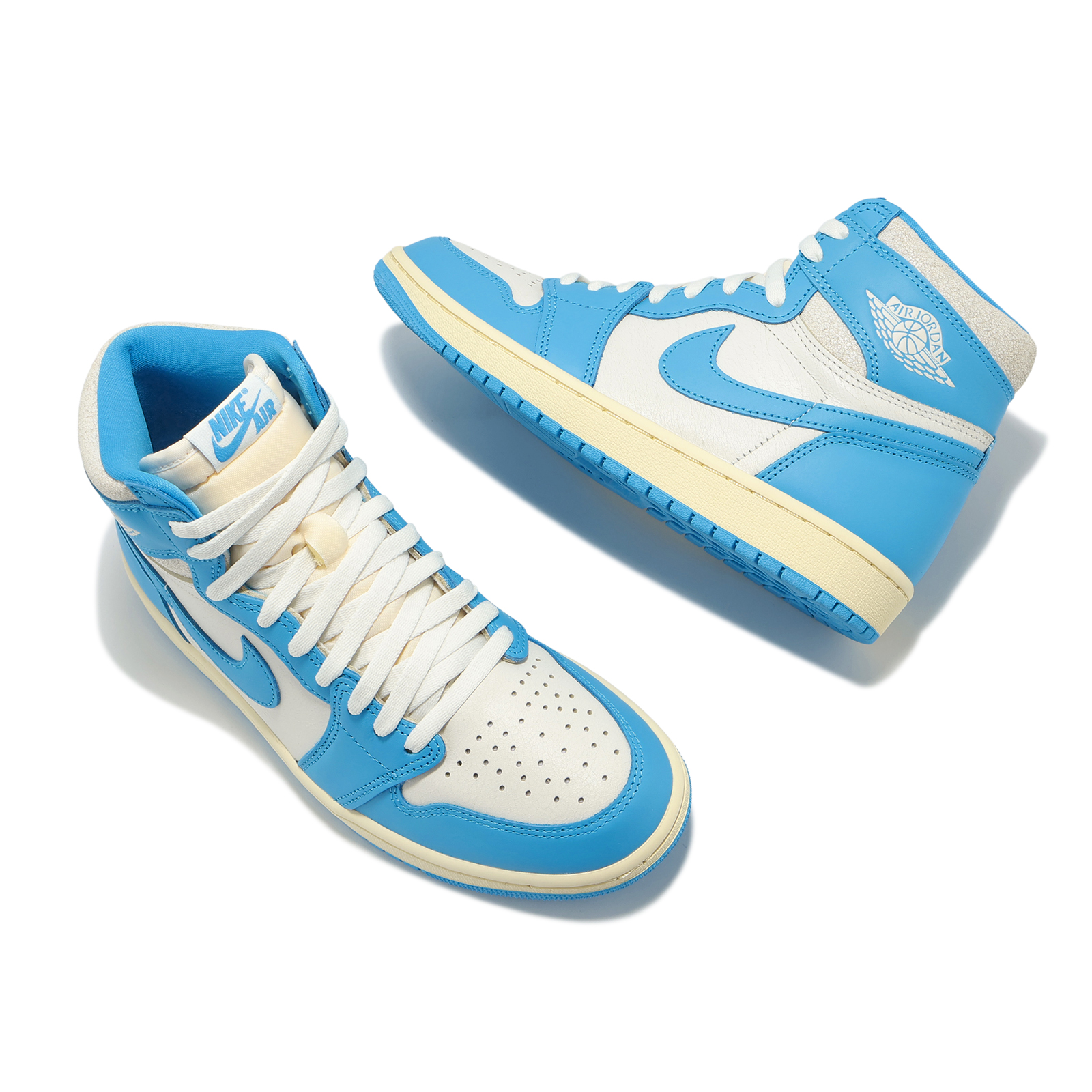 * 深粉藍色與乳白色的經典配色搭配仿舊皮革和特殊包裝,營造出歷久彌新的復古質感,這雙全新詮釋的 AJ1 高筒鞋,是向Michael Jordan在北卡羅萊納州的根源致敬。