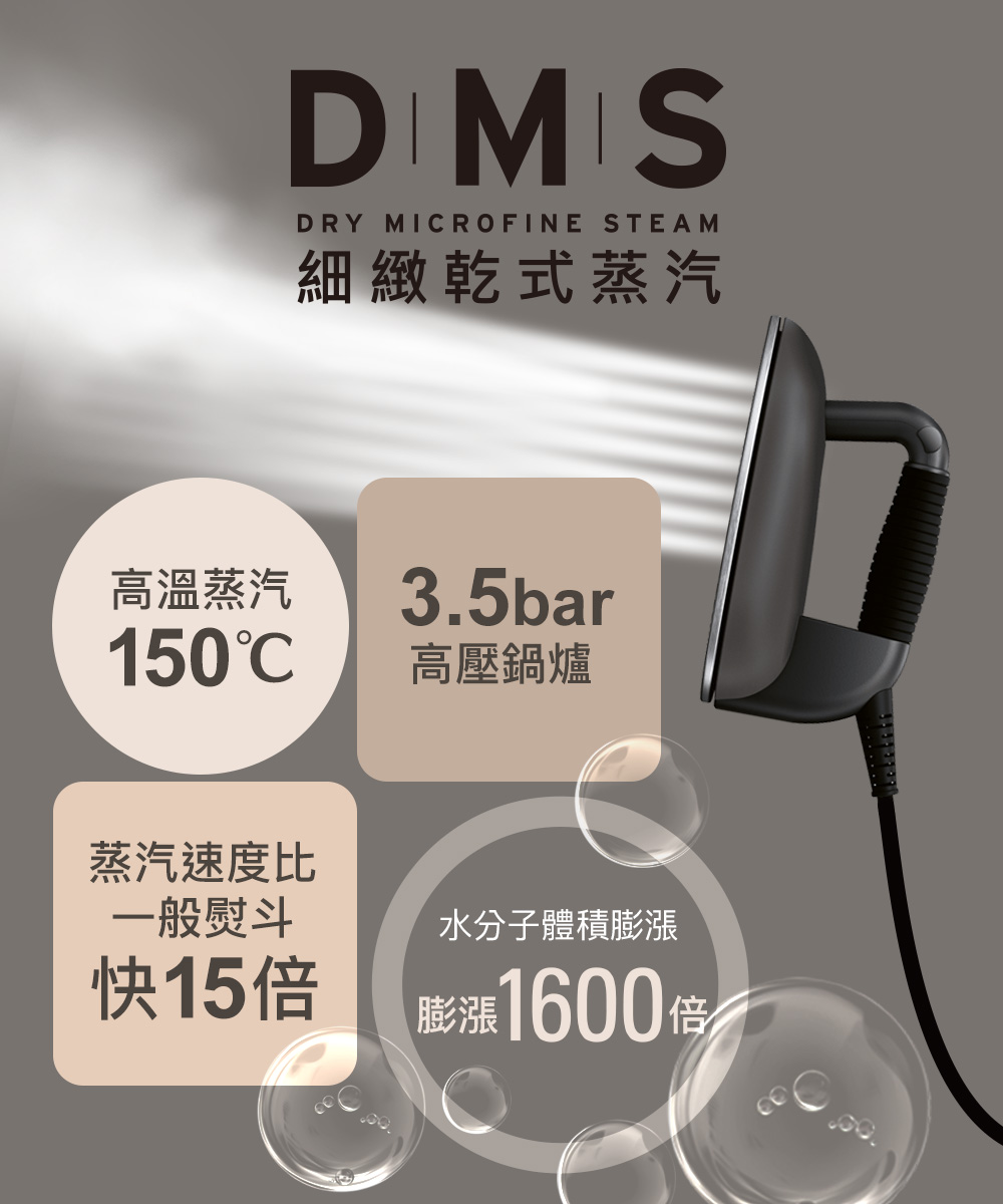 強勁的細緻乾式蒸汽,有效滲透衣物纖維,快速熨燙