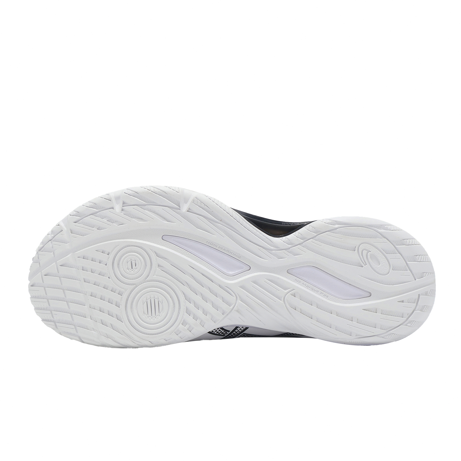 * 前掌大底採雙圓形凹槽設計,於側向移動時提供出色的抓地性,並將重心快速移動至內側,維持腳步穩定。