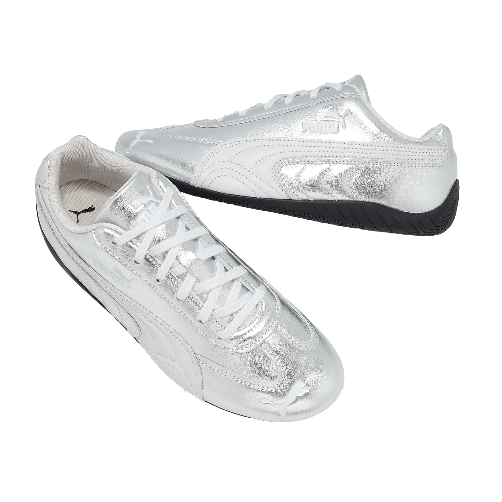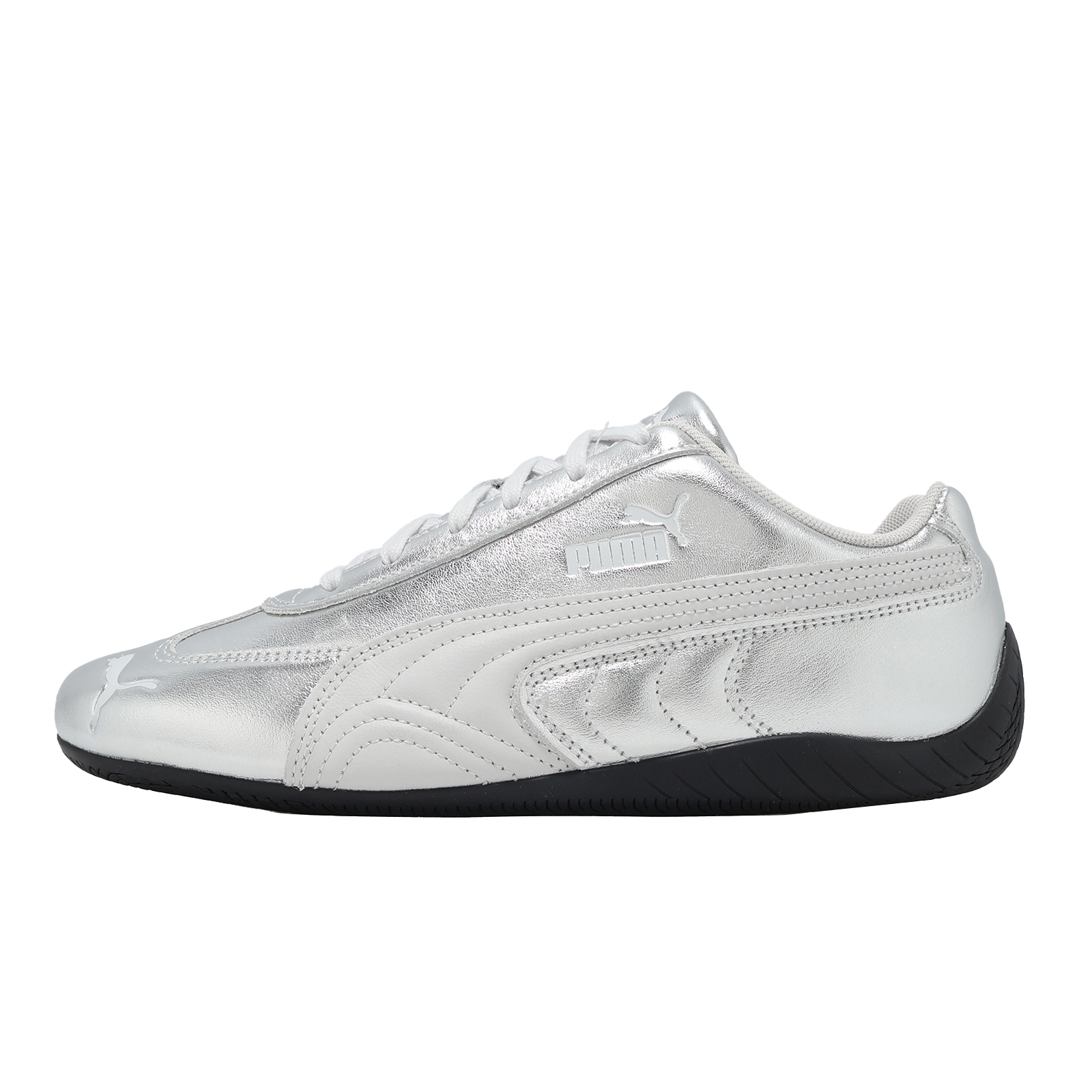 品牌: PUMA型號: 406881-01品名: Speedcat Silver Wns版型: 版型正常* 賽車鞋以合成材質搭配金屬銀色調設定,不僅足感柔軟舒適,且具高質感的視覺效果。