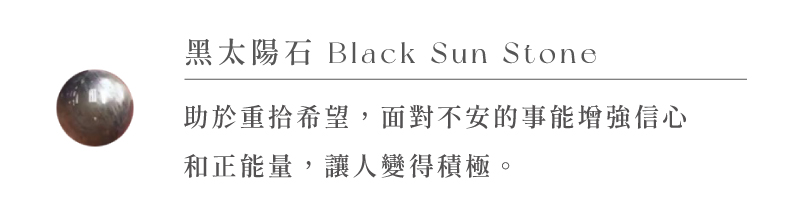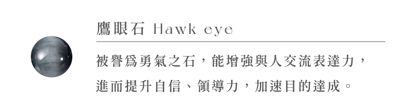 ◦ 虎眼石 | 自信, 勇氣, 招財◦ 鷹眼石 | 激發勇氣, 加強表達能力, 提升創造力◦ 黑太陽石 | 正能量, 辟邪招財, 增強體力