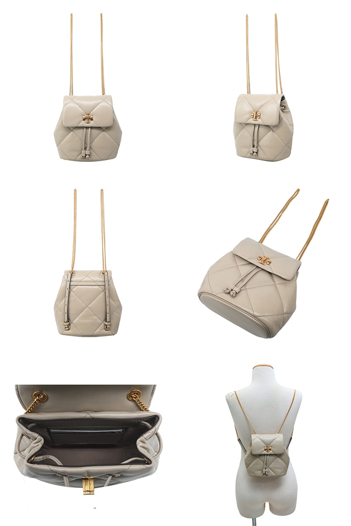 [平輸版] 【TORY BURCH】KIRA 菱格紋絎縫翻蓋後背包(迷你/米灰)真品平輸 | NearMe | 線上送禮平台『獨家支援 收禮者改選禮物』