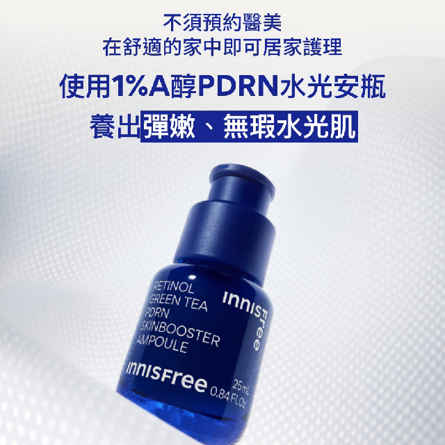 添加A醇及綠茶PDRN™的煥膚安瓶,有效調理代謝角質、緊緻毛孔、改善肌膚彈性,擁有光滑緊緻的肌膚。適合追求水潤透亮肌膚,重視肌膚緊緻與彈力的顧客。