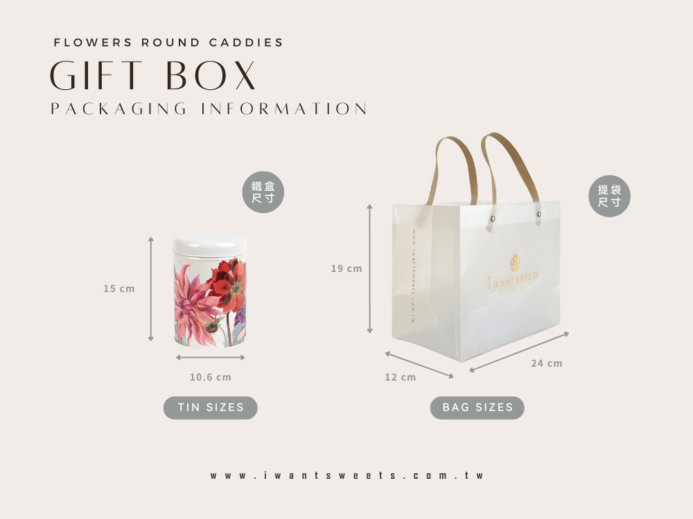 花卉糖果圓罐:直徑10.6cm x 高15cm