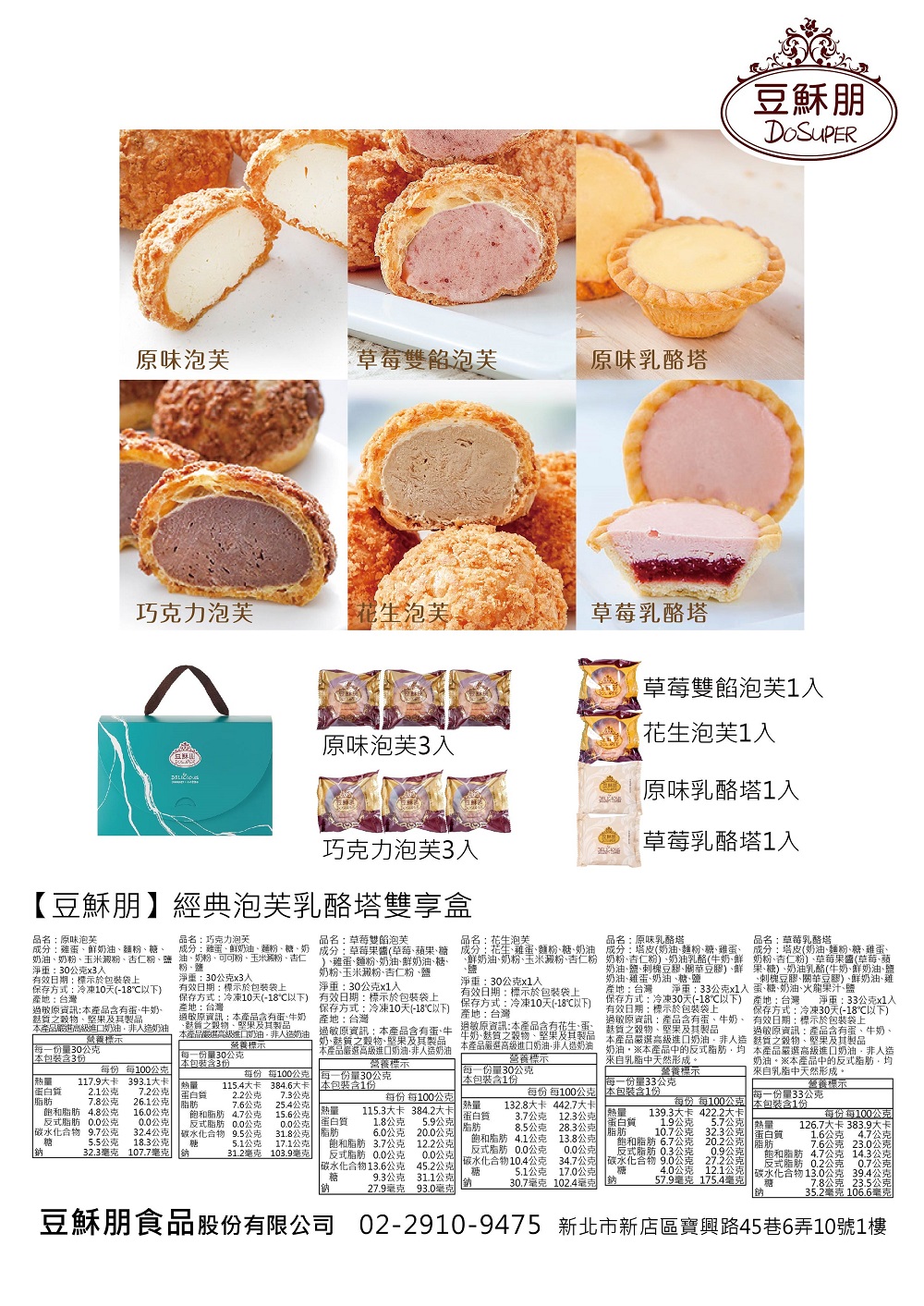 豆穌朋 - 經典泡芙乳酪塔雙享盒,1盒(10入/盒)$420