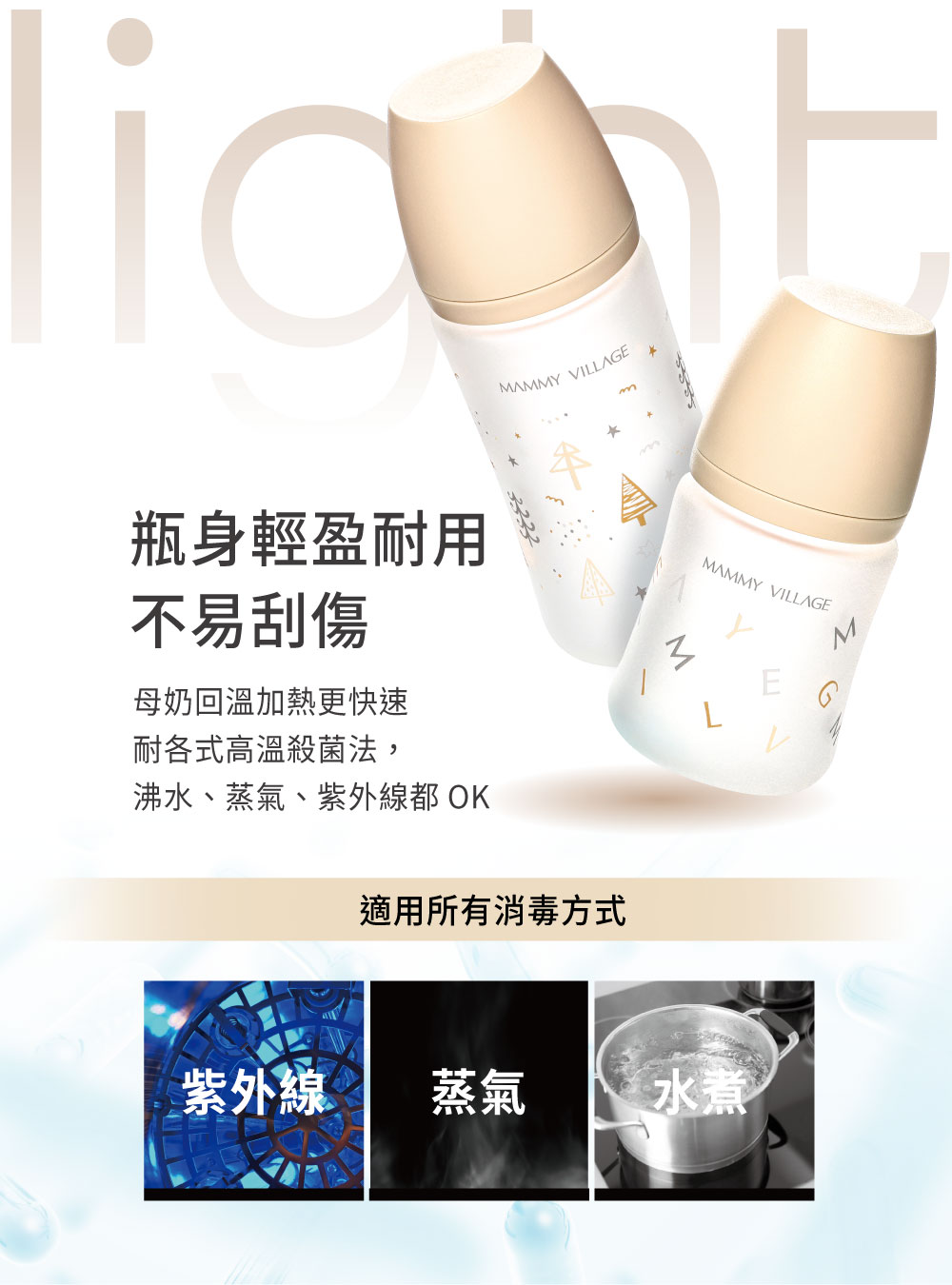 ‧耐各式高溫殺菌法,沸水、蒸氣、紫外線都OK