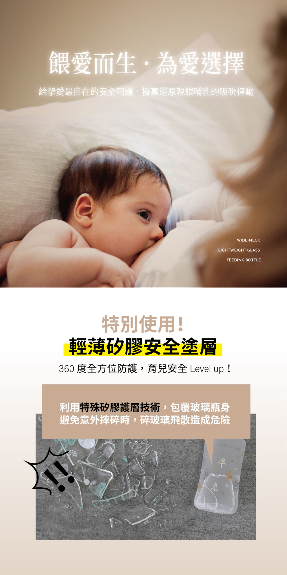 品名:OhMo歐哞・寬口矽膠玻璃奶瓶
