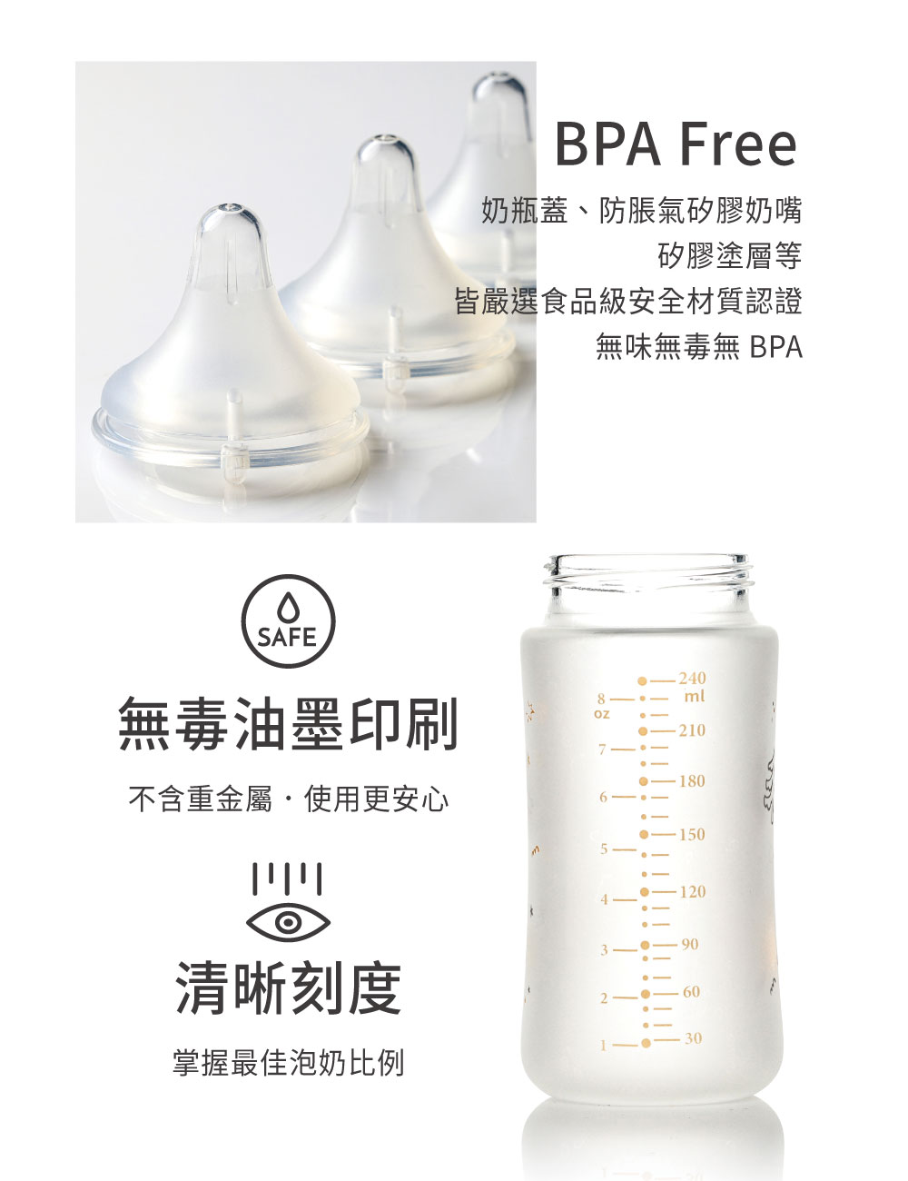 奶瓶(外層)Bottle (Outer Layer)–食品級矽膠Food Grade Silicone