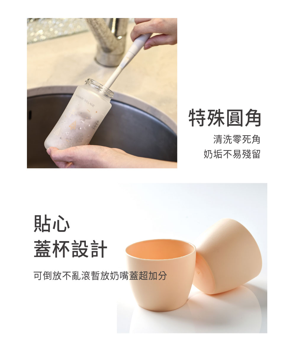 清洗時,建議使用較柔軟的海棉,勿使用菜瓜布、研磨粉或過粗的刷子會使奶嘴與瓶身刮傷。