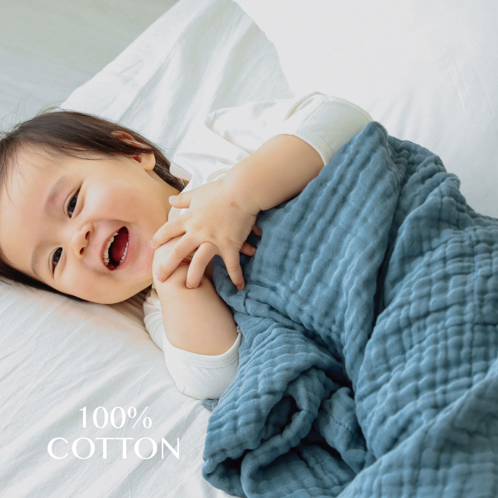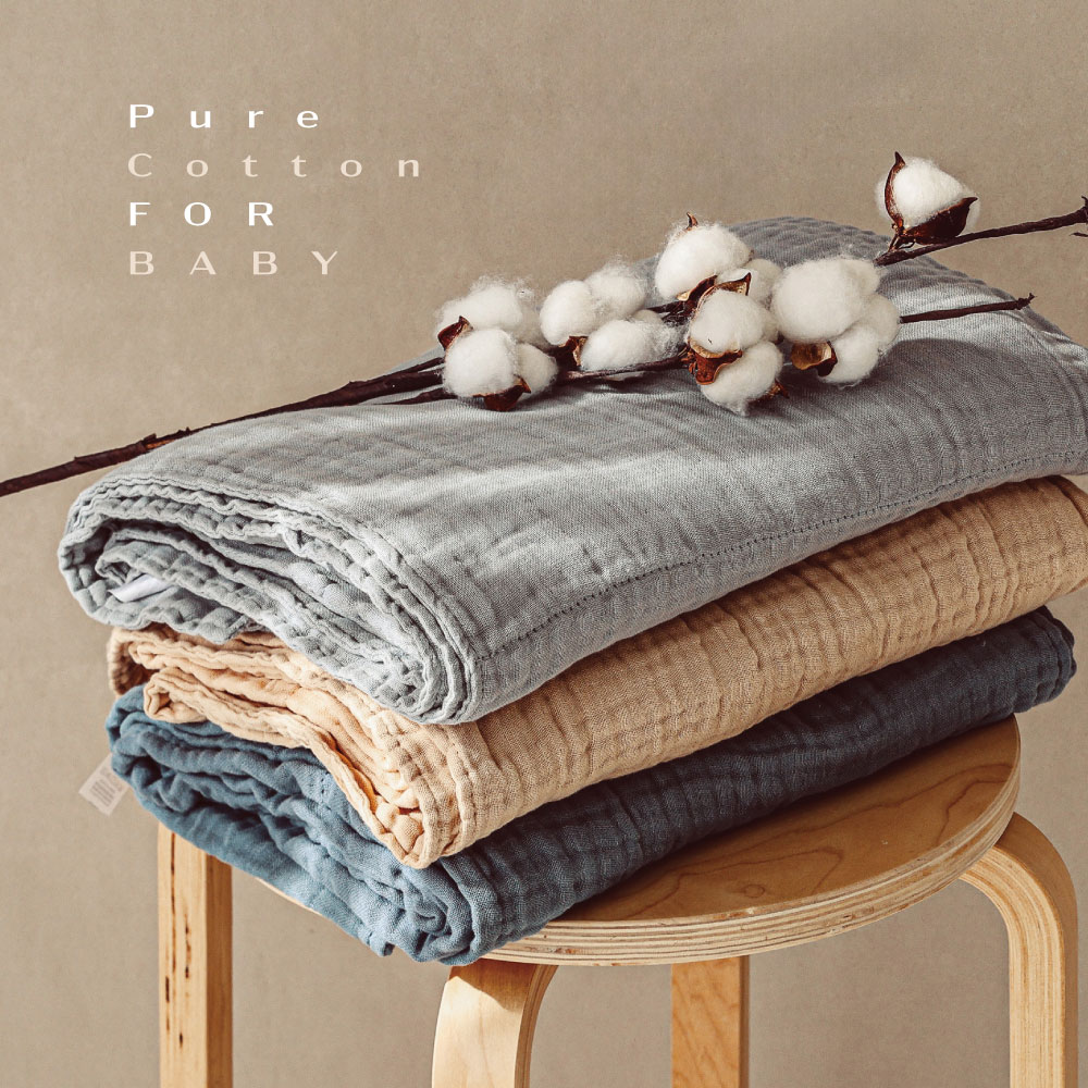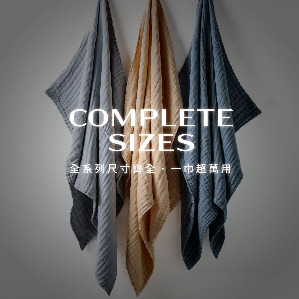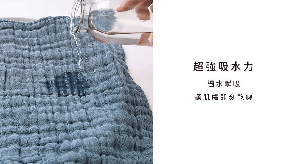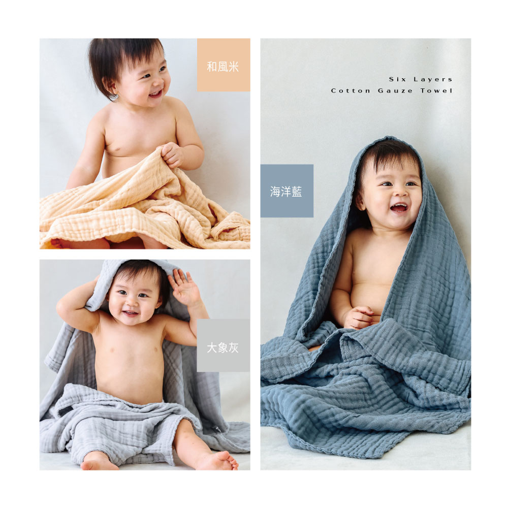 ‧ 六層棉紗-由六層純綿紗線織成,形成多重空氣隔層,洗滌後觸感更加柔軟