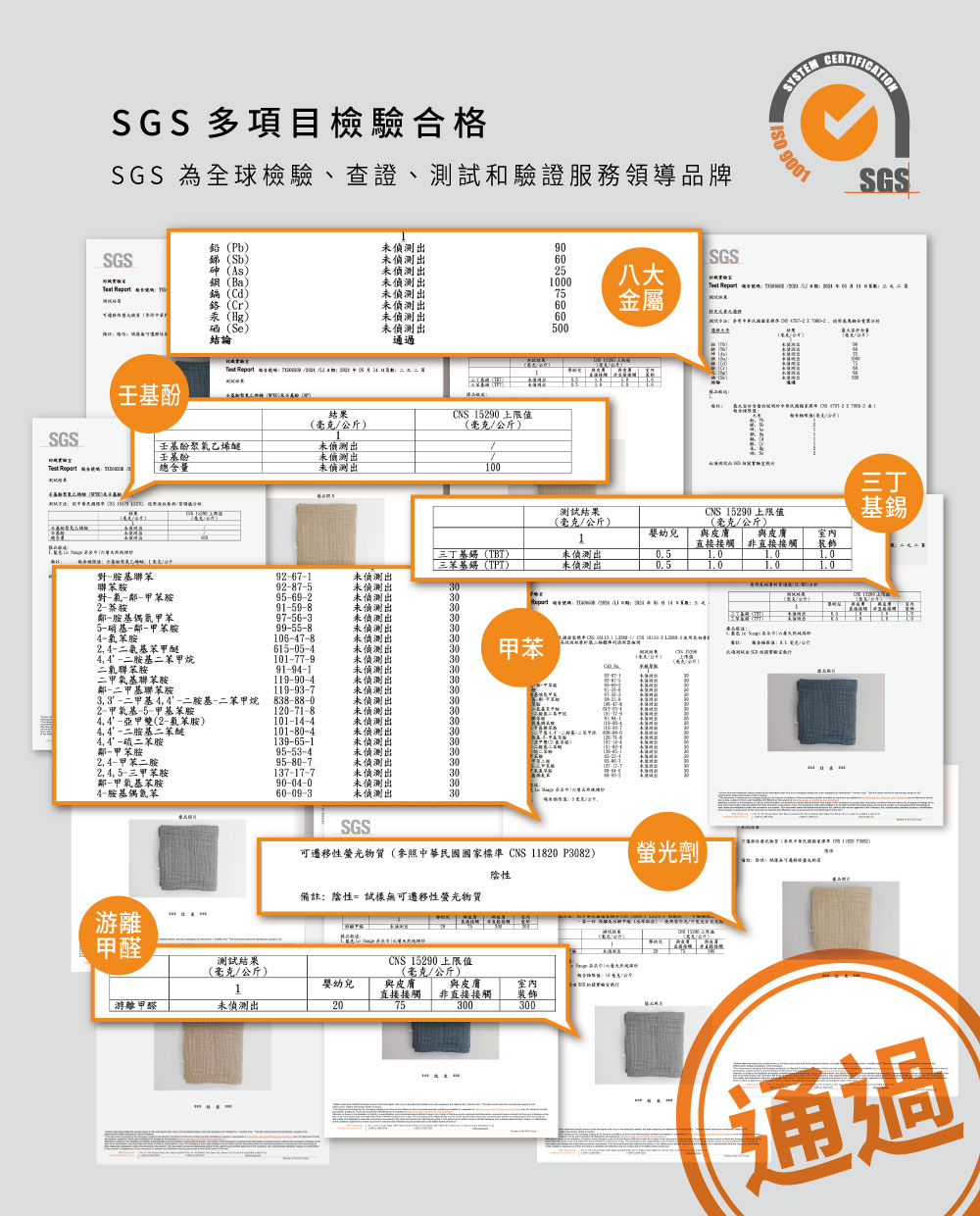 ‧ 安心有保障-通過SGS檢驗不含游離甲醛、螢光劑、八大重金屬等有害物質