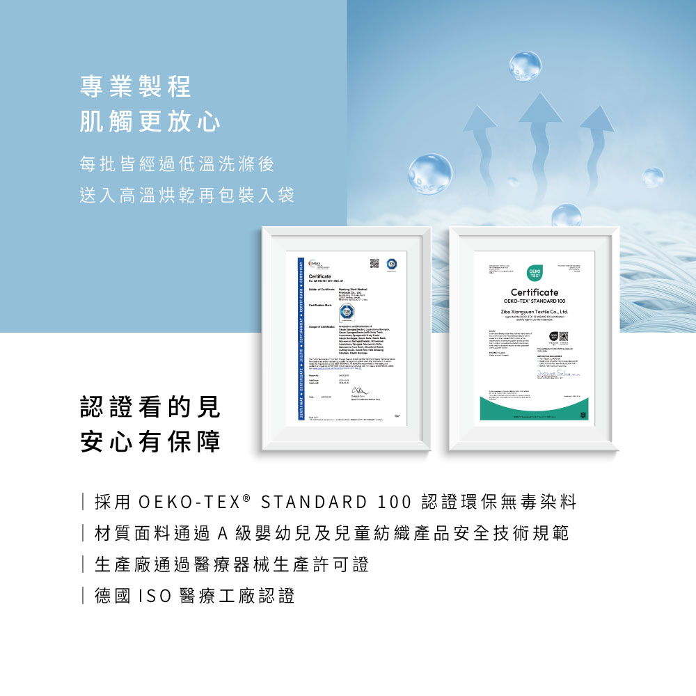 ‧ 敏感肌首選-不含人造纖維,並採用OEKO-TEX® STANDARD 100認證環保無毒染料,不刺激肌膚