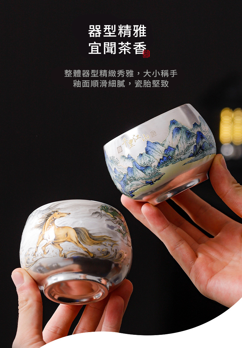 這不只是一只茶杯,更是一件可以握在手心的藝術品。 我們將傳統琺瑯彩工藝與內壁鎏銀技術完美結合。