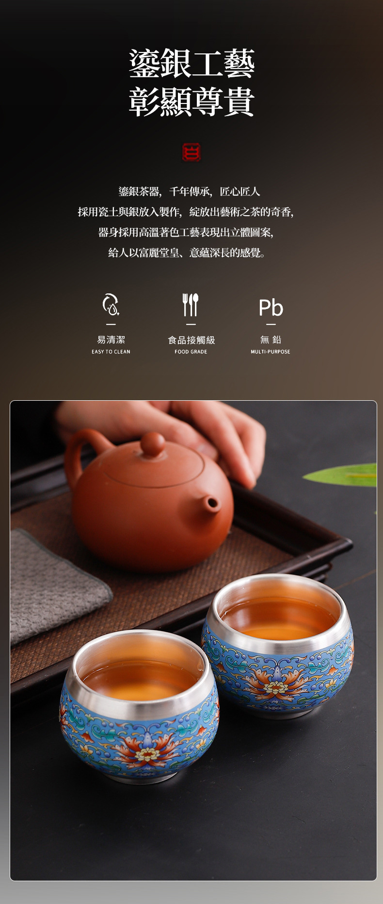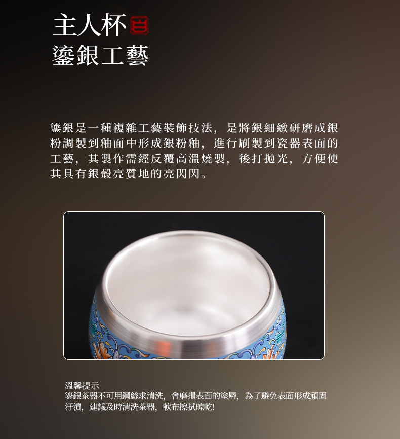 內壁則運用手工鎏銀技術,將純銀的純淨與瓷器的溫潤完美結合。
