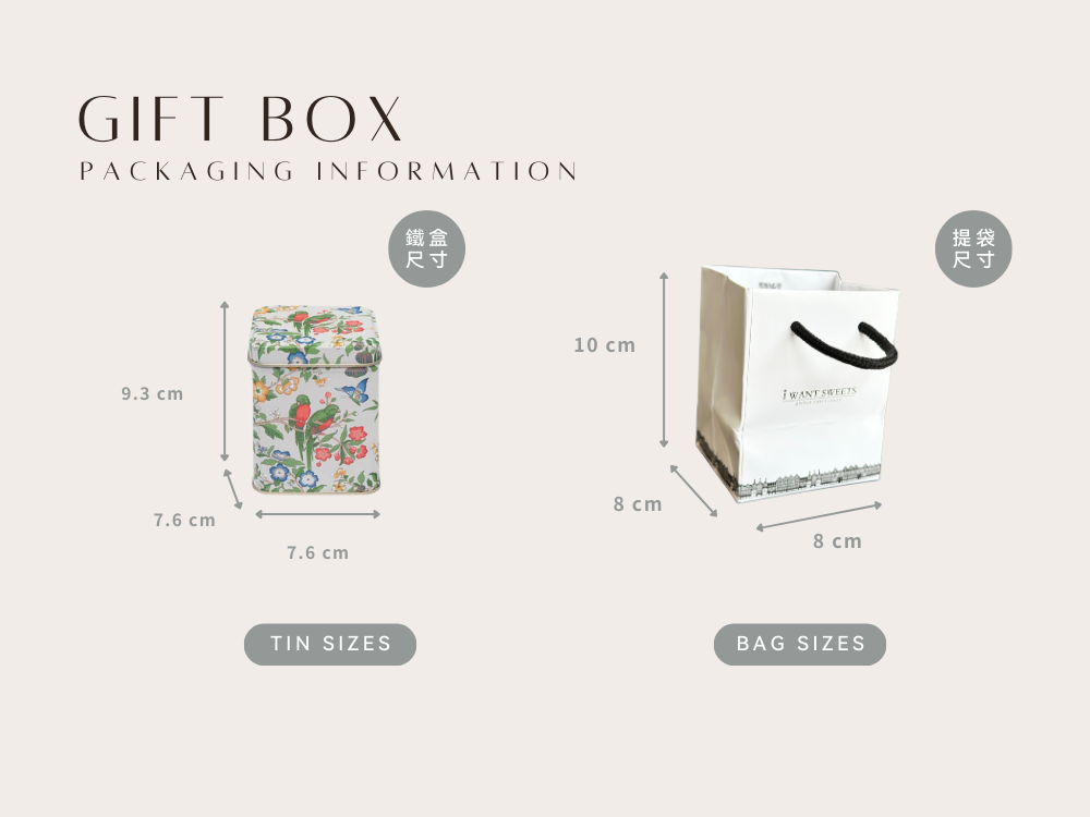 鐵盒尺寸:7.6 cm x 7.6 cm x 9.3 cm