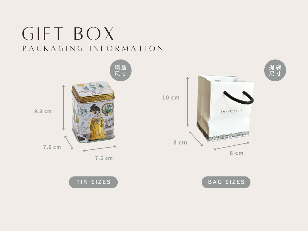 鐵盒尺寸:7.6 cm x 7.6 cm x 9.3 cm