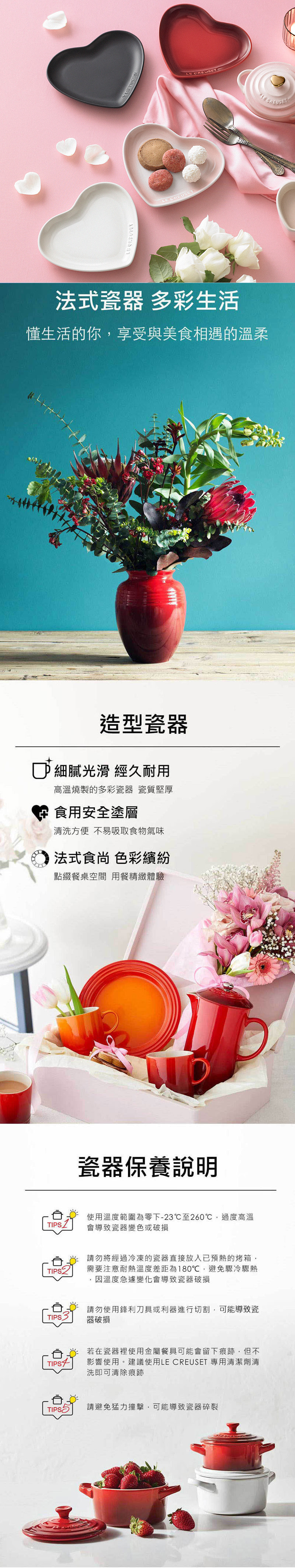 Le Creuset-瓷器花蕾系列心型盤 17cm - 4入 (沉靜黑/櫻桃紅/貝殼粉/蛋白霜) | NearMe | 線上送禮平台『獨家支援 收禮者改選禮物』