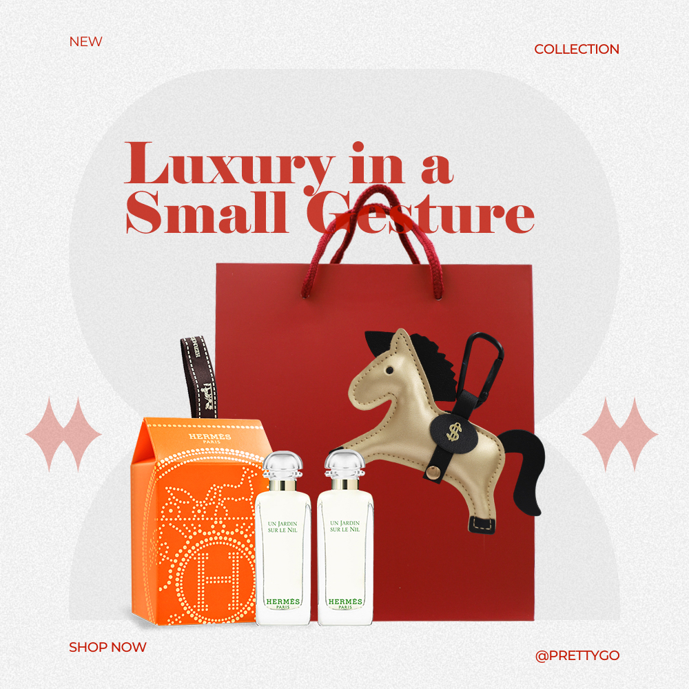 商品名稱:HERMES 愛馬仕 一馬當先 好事成雙-橘彩星光X2/尼羅河花園X2-附小馬吊飾 禮袋