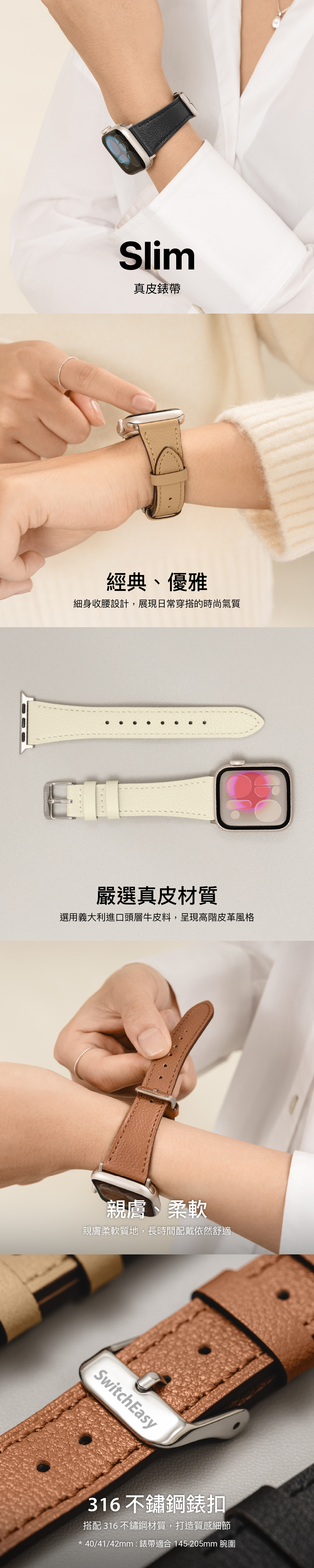 * 40/41/42mm : 錶帶適合 145-205mm 腕圍。