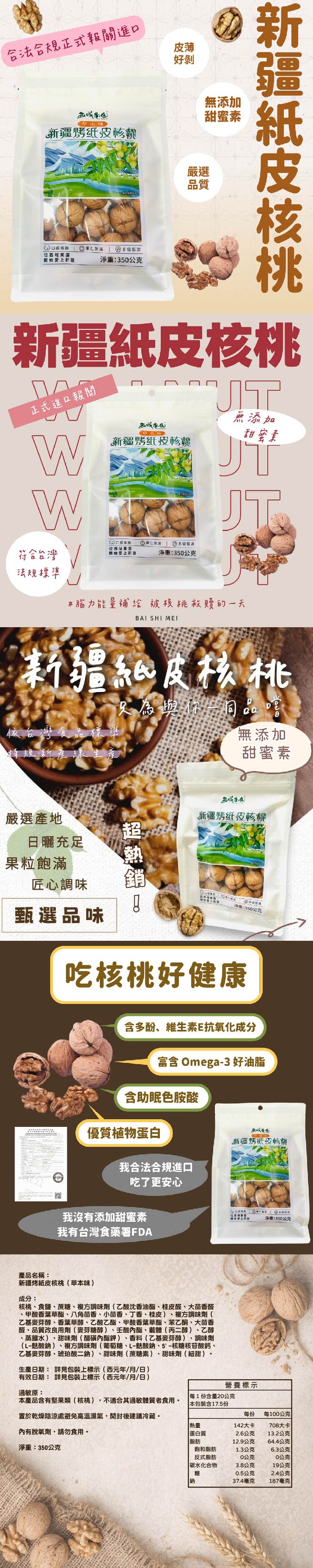品名:【西域果園】新疆紙皮烤核桃 草本口味(350g/袋)