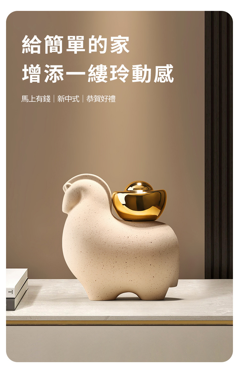本系列擺件以「新中式」風格為核心,將古典意象「馬」與「象」進行抽象化設計。