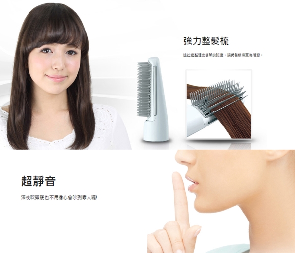整髮梳單件式冷、溫、熱三段式溫度選擇防止髮絲吸入裝置超靜音裝置(57dB)