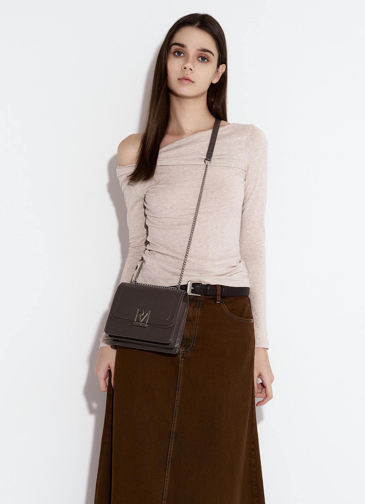 可放置6.7吋手機✔️ 不可放置長夾✖️輕奢質感方形斜背包,輕巧設計適合出遊赴約佩戴皮革特殊壓紋外觀,延續經典 Elly 系列波浪紋掀蓋造型基本收納空間,可放置外出隨身小物背帶一體成型,拉動鏈帶可轉換肩背背法