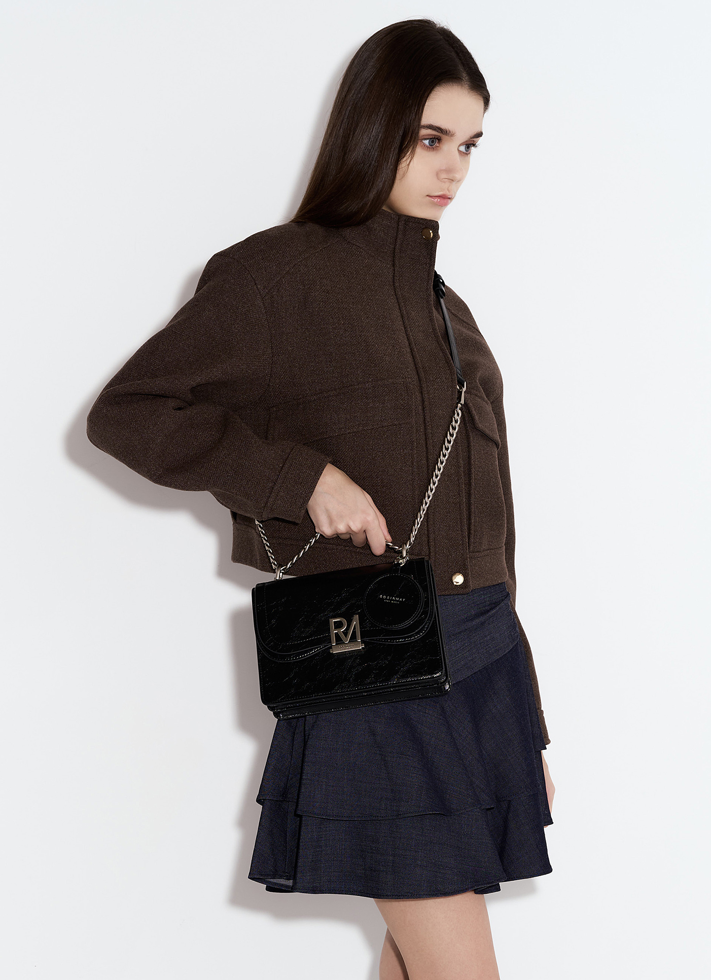 可放置長夾、6.7吋手機✔️ 輕奢質感方形斜背包,通勤赴約都適合佩戴皮革特殊壓紋外觀,延續經典 Elly 系列波浪紋掀蓋造型寬敞收納空間,可放置外出隨身小物背帶一體成型,拉動鏈帶可轉換肩背背法附小圓鏡子吊飾