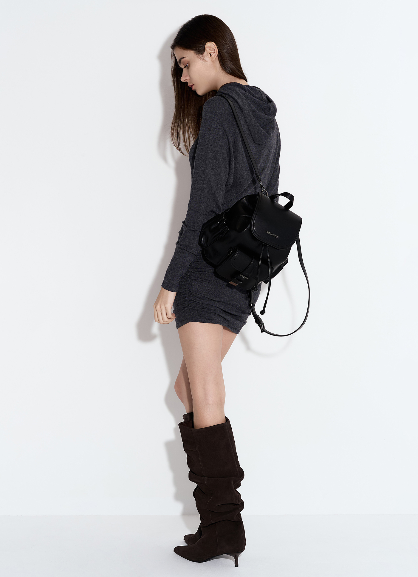 商品編號:WD007尺寸:長27cm / 寬18cm / 高24cm背帶長度:最短73cm / 最長90cm手提高度:8cm收納隔層:拉鍊x1、口袋x2背法:後背材質面料:高級PU訂製皮革、內層絨布面料開法:束口、金屬磁扣