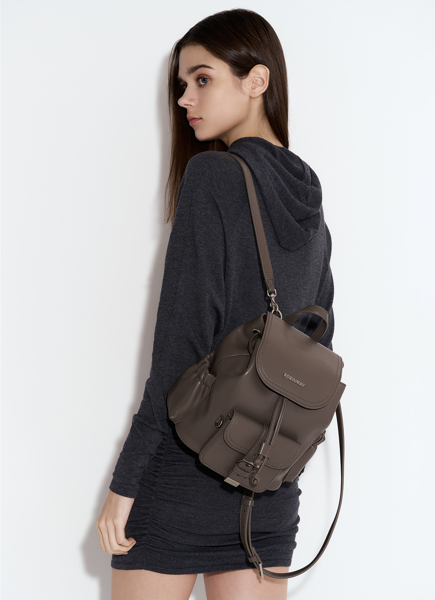 可放置長夾、6.7吋手機✔️立體水桶造型後背包,輕奢休閒風格品牌字母金屬 LOGO 標誌,英倫感設計外型大容量內裝空間,隨心裝載外出物品背帶採可拆式,可隨自身風格調整合適長度
