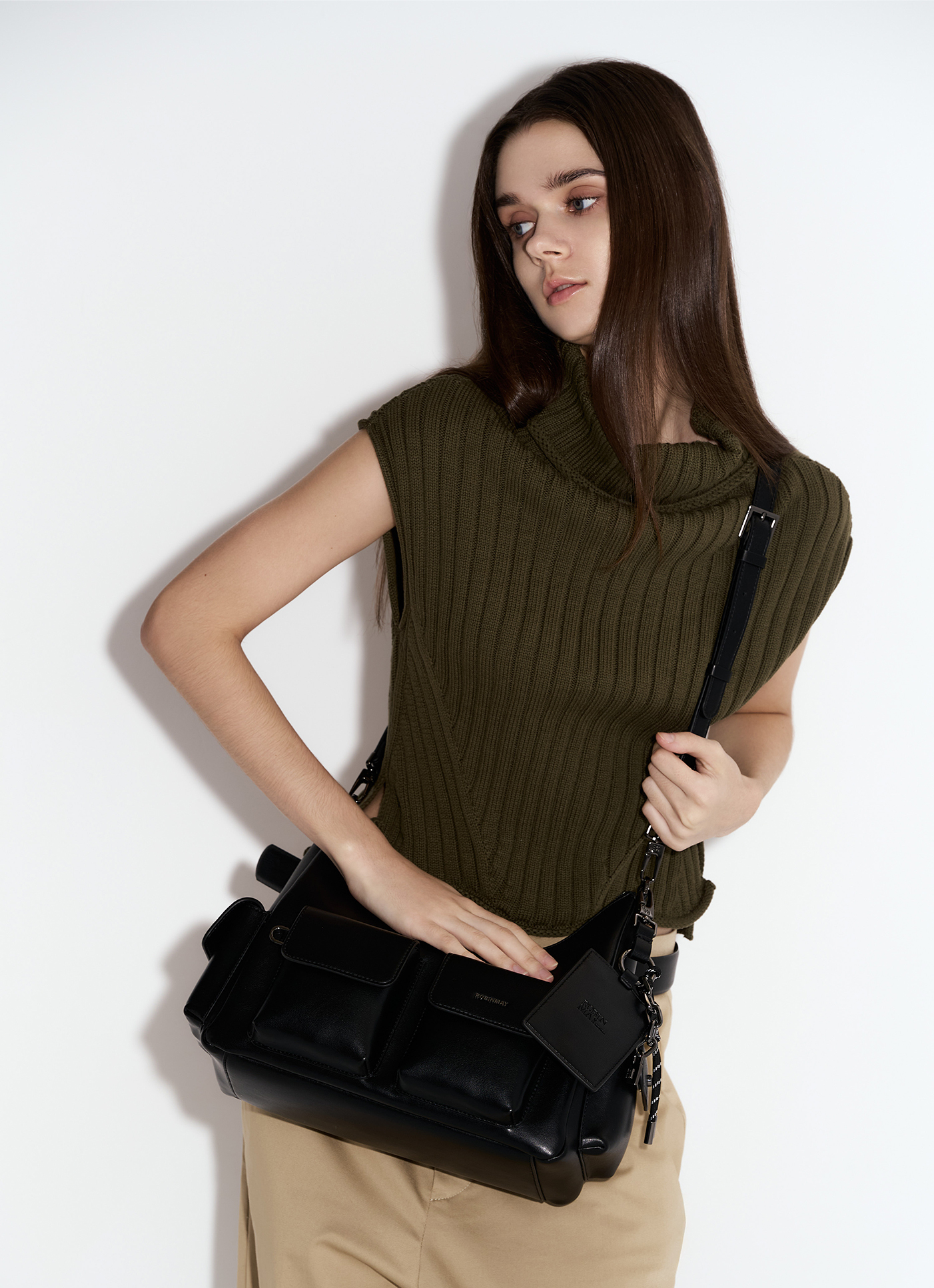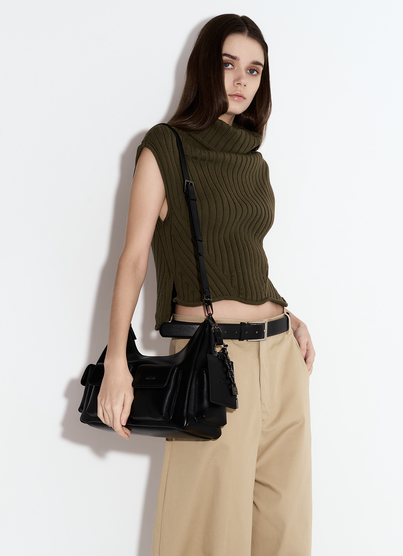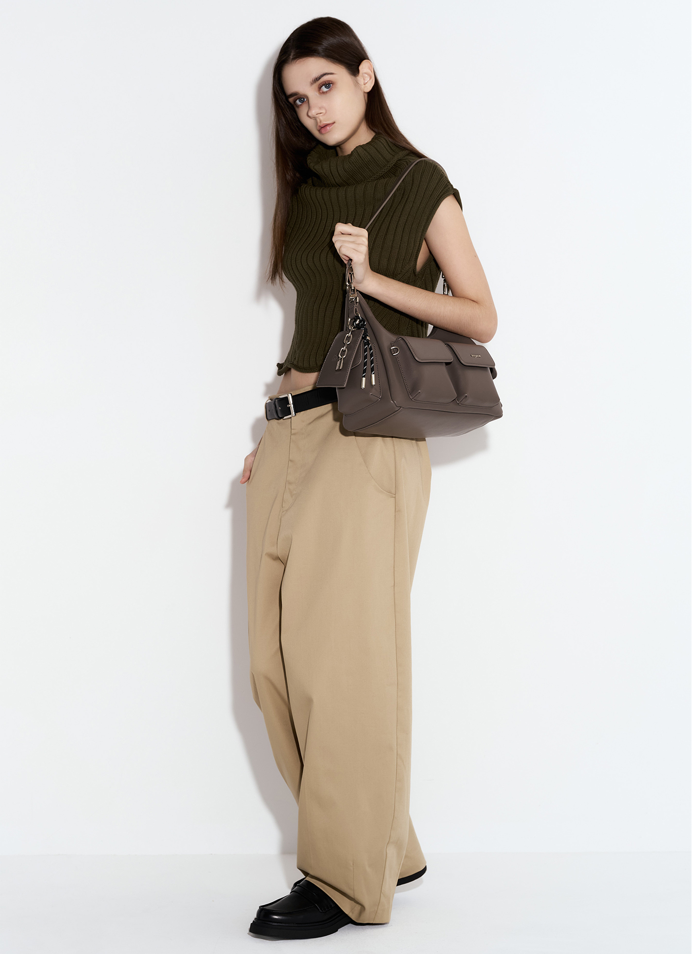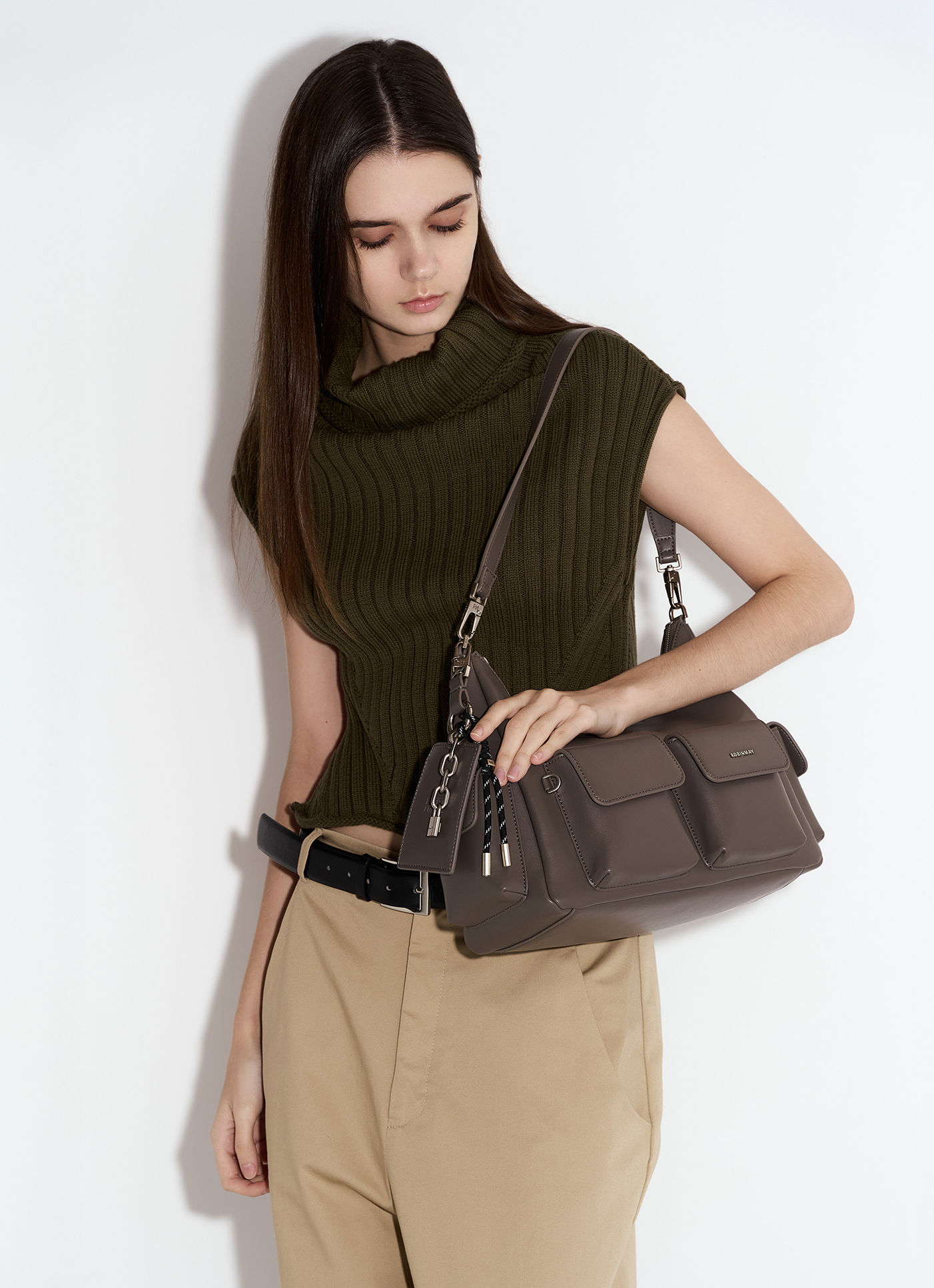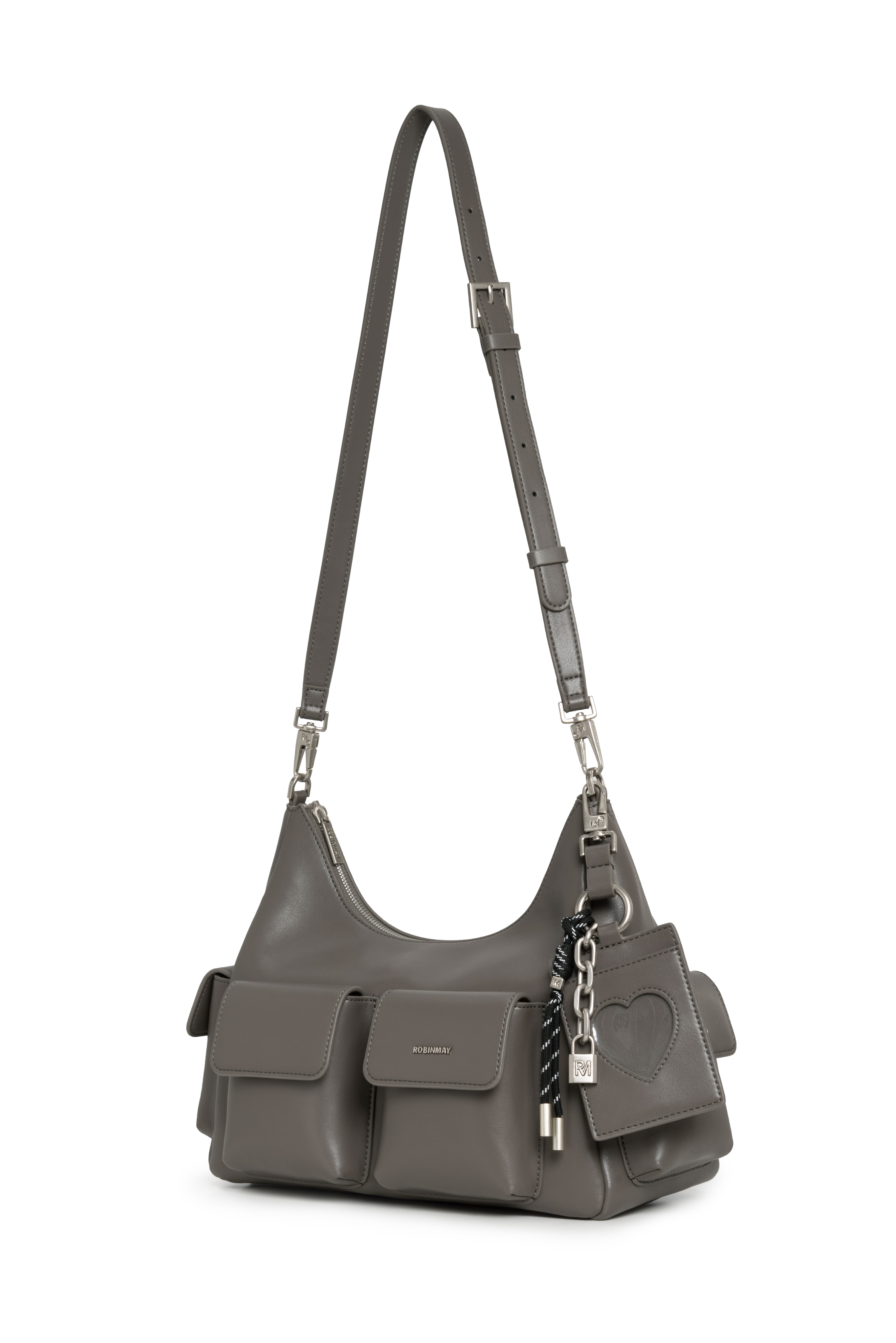 可放置長夾、6.7吋手機✔️工裝風彎月包設計,多口袋風格收納便利ROBINMAY 質感金屬字母 LOGO多重收納空間,輕鬆裝載外出所需物品雙背帶設計,可自由切換肩背、斜背穿搭附設計感卡夾吊飾串