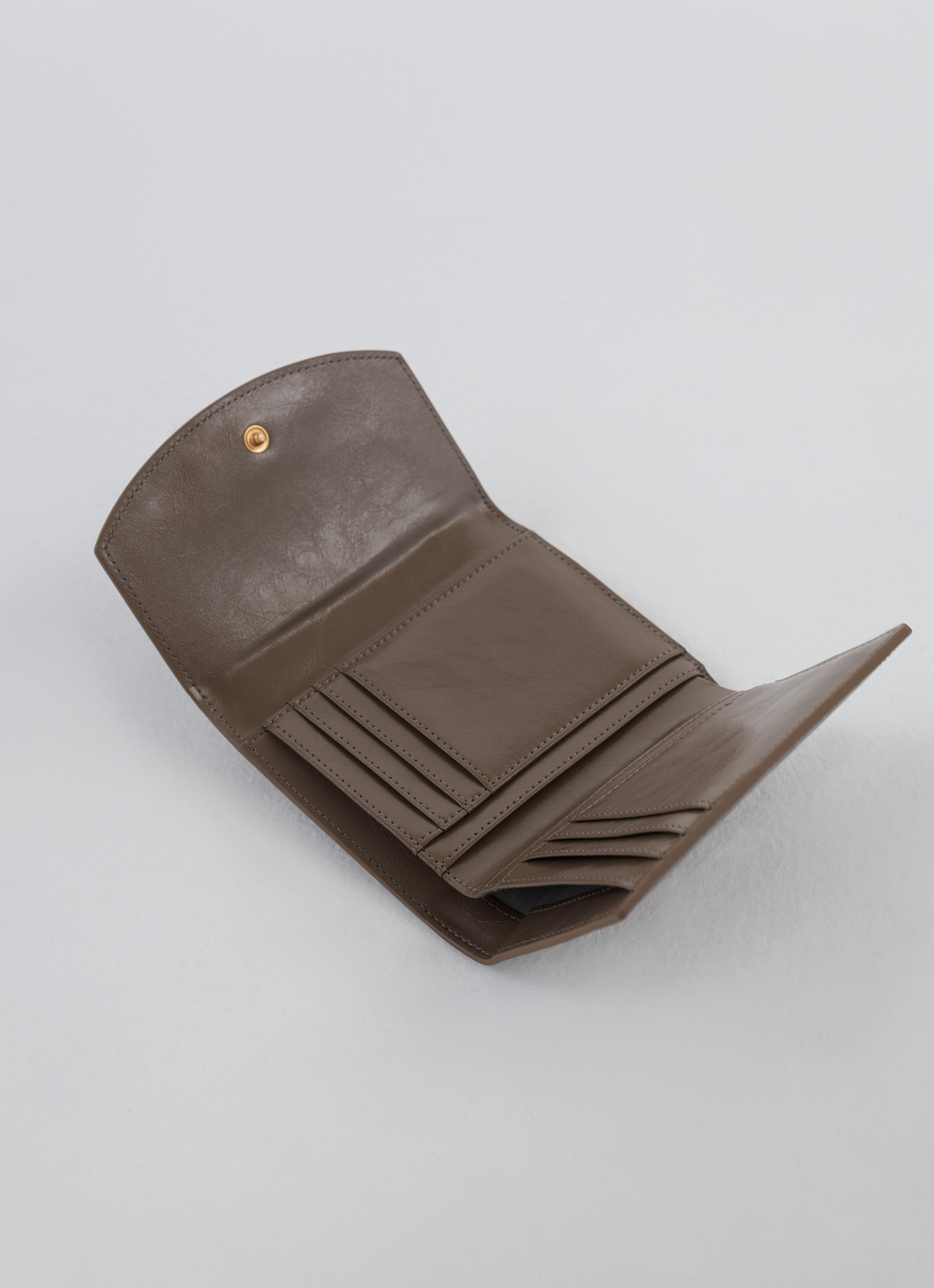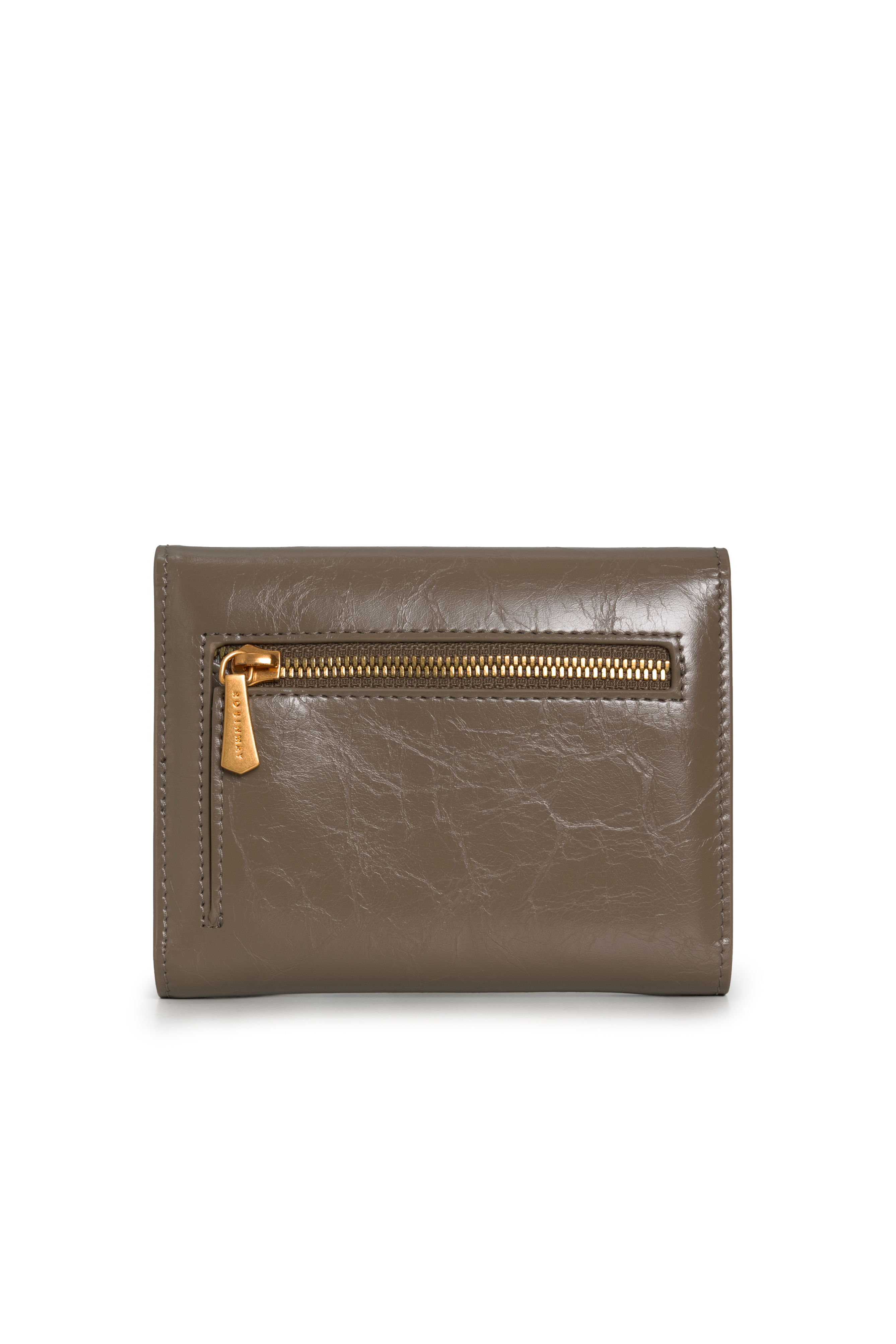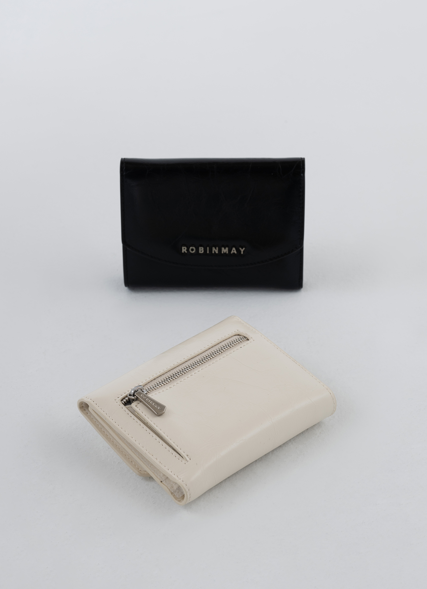 輕薄掀蓋短夾設計,適合日常使用ROBINMAY 字母 LOGO 標誌、皮革特色皺摺壓紋基本收納空間,票卡零錢時穩妥收納手感輕盈,尺寸適中,可置入隨身包包內