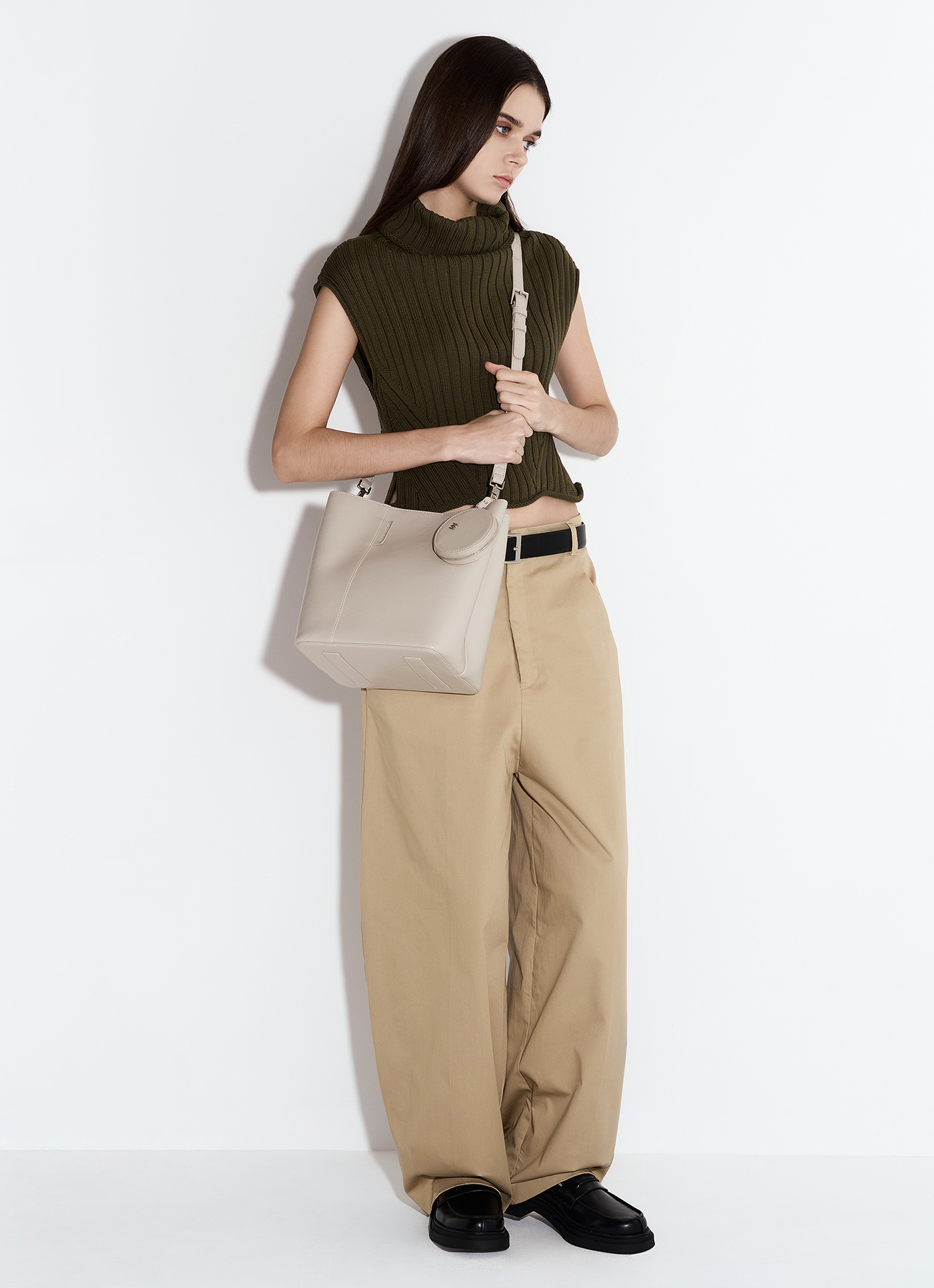 商品編號:B314尺寸:長22cm / 寬17cm / 高26cm背帶長度:最短90cm / 最長113cm肩背高度:32cm收納隔層:拉鍊x1、口袋x1背法:肩背、斜背材質面料:高級PU訂製皮革開法:金屬磁扣