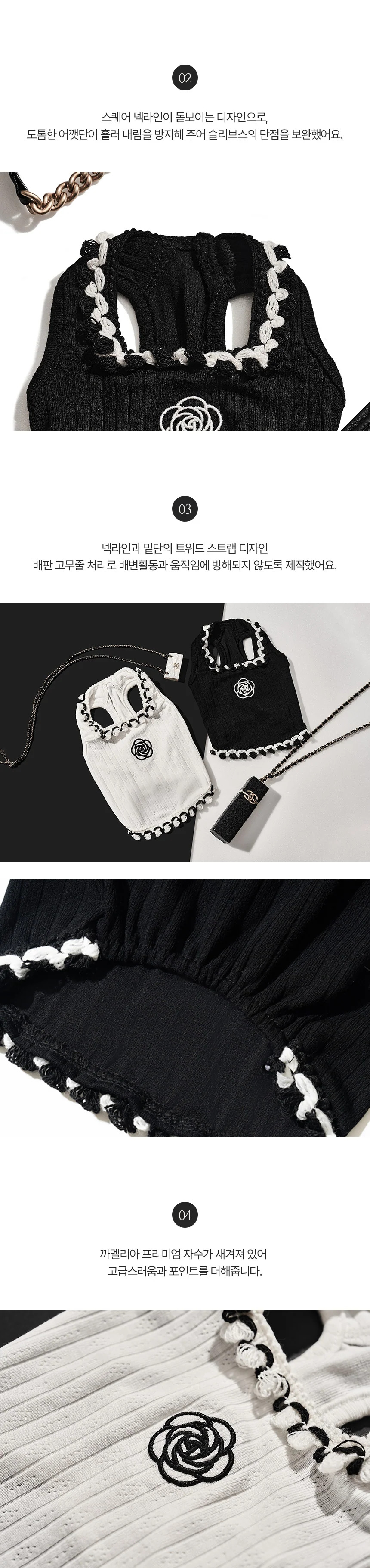 山茶花刺繡方形領口粗花編織保暖針織寵物服飾(2色)X1
