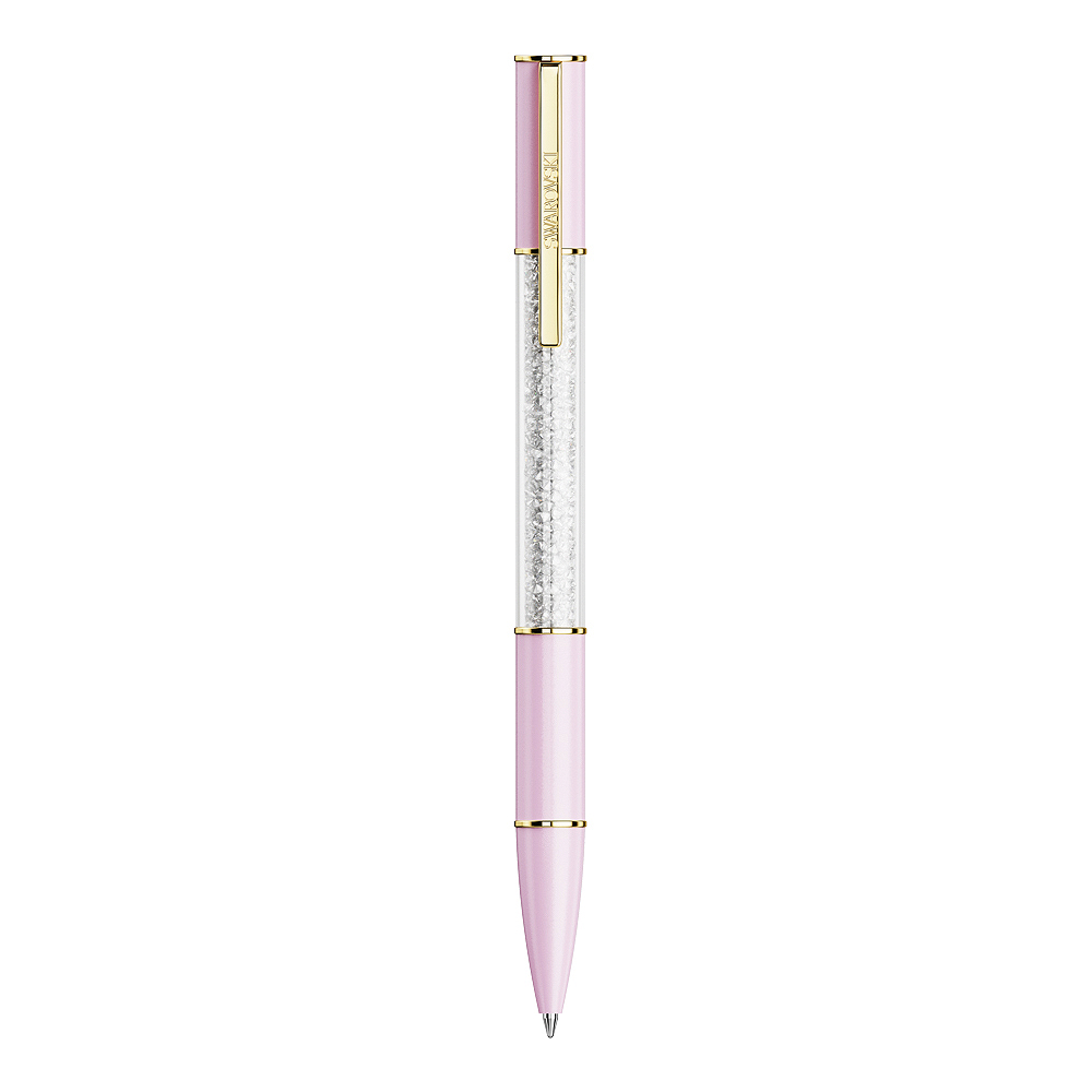 Crystalline 圓珠筆巧妙融合創意與奢華。這款獨特的書寫工具的白色圓形筆身搭配玫瑰金色調裝飾,其中包括刻有 Swarovski 名稱的功能性筆夾。這款吸睛設計的中心由約 480 顆閃耀的 Swarovski 水晶填充,每顆均採用代表性的 Crystalline 技術,散發一絲不苟的光芒。是您辦公桌上的絕佳夥伴,或是餽贈您喜愛的作家的獨特禮物。黑色和藍色筆芯可於 Swarovski 商店選購。