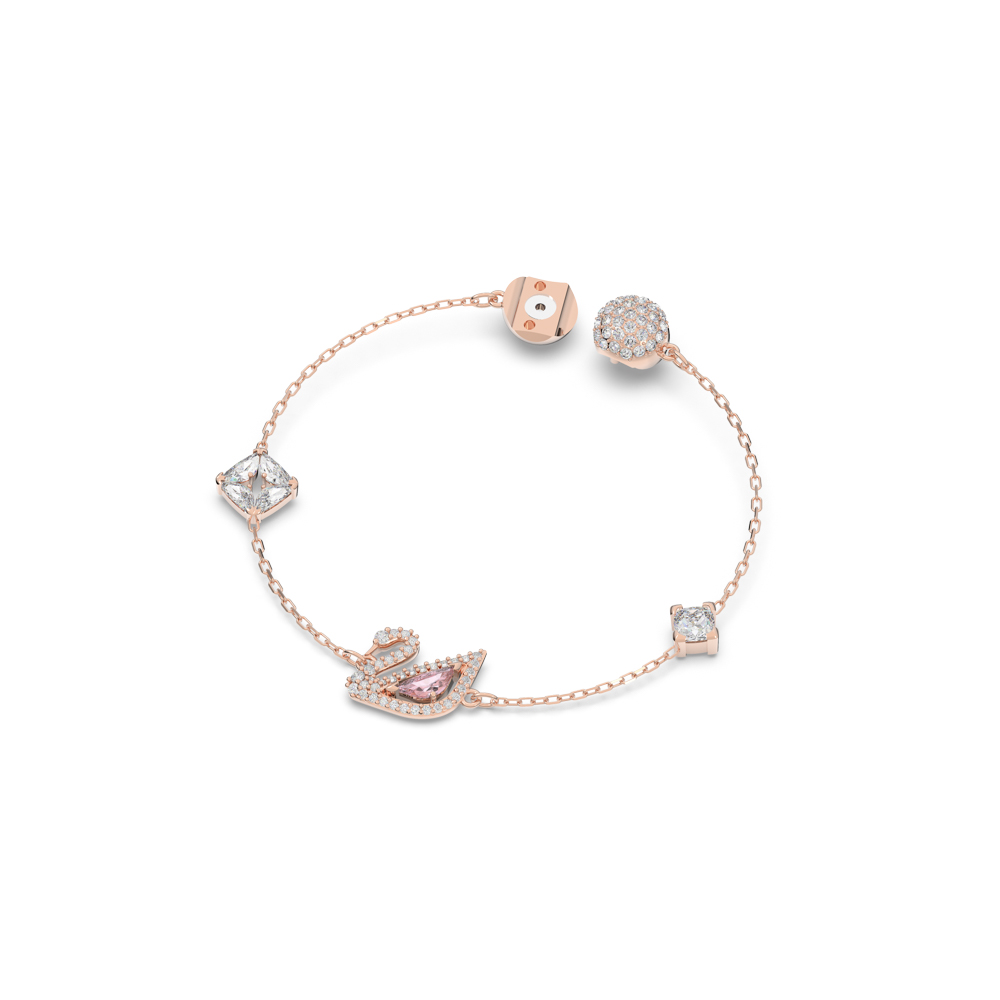 這款精緻講究的鍍玫瑰金色手鏈可為裝扮注入含蓄雅致的魅力,同時散發清新浪漫的氣息。天鵝標誌裝飾以亮麗的粉紅色全切割Swarovski水晶身軀,搭配簡潔俐落的透明密鑲Swarovski水晶線條,彰顯出Swarovski的非凡設計,加上創新的磁性扣,讓您可隨意組合Swan Collection的其他飾鏈,打造出獨一無二的造型--雙圈手鏈、項鏈或短項鏈。百搭靈活的風格,絕對是您的必備首飾。另有同款單品以供選購。