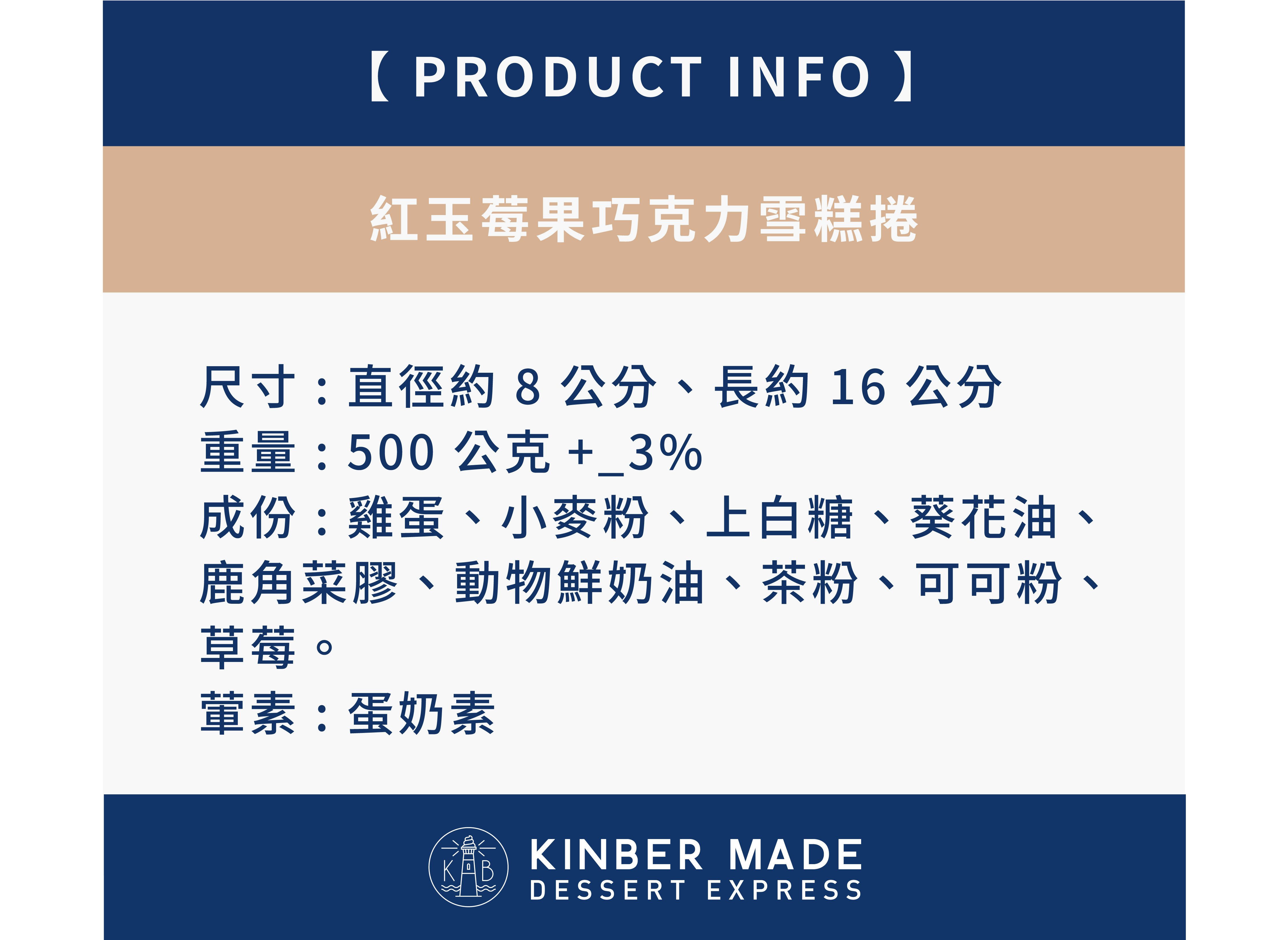 商品內容名稱:紅玉莓果雪糕捲貨號:322450848成份:雞蛋、小麥粉、上白糖、大豆油、鹿角菜膠、動物鮮奶油、茶粉、可可粉、草莓。尺寸:500 公克± 3% / 直徑約8公分、長約16公分保存方式:冷凍7天